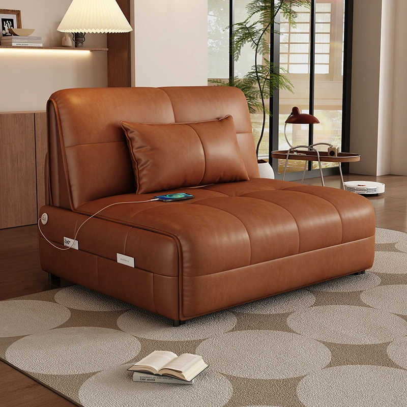 2025年新款!スマート電動ソファベッド、折りたたみ式・油ワックスレザー使用。小型住宅や書斎に最適な多機能・本革ソファ。快適さとスタイルを兼ね備えた理想のアイテム!