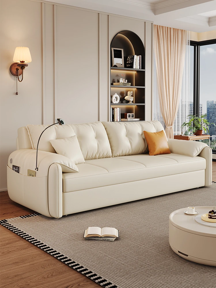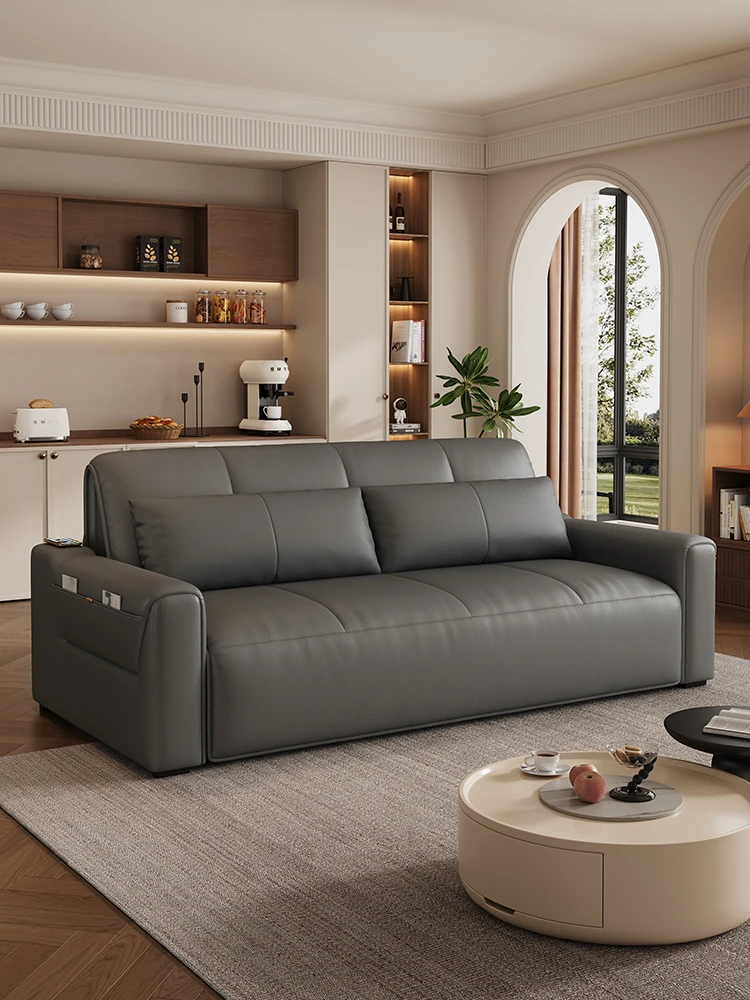 2025年新款!スマート電動ソファベッド、折りたたみ式で2way使用可能!ナパ本革製、小型住宅に最適な多機能ストレッチベッドで、リビングをスタイリッシュに演出します!