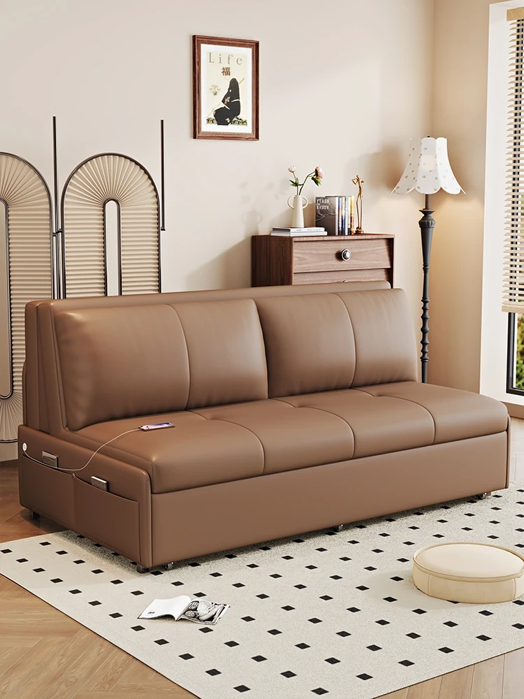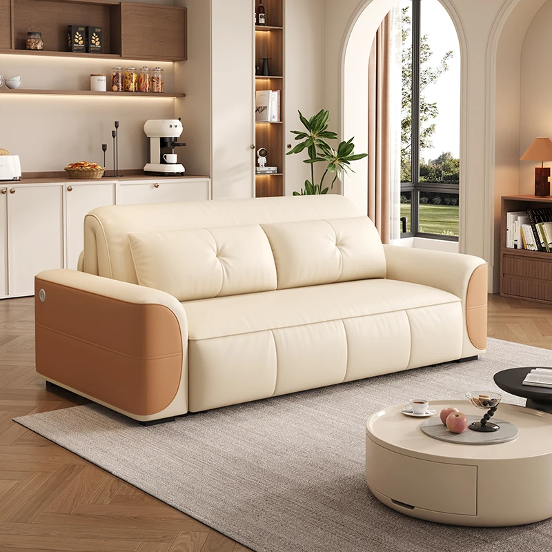 新型2025年登场!頭層牛皮使用のスマート電動ソファベッド。古風デザインで小型住宅に最適!シングル・ダブル兼用、折りたたみ式でスペースも有効活用。快適な寝心地とスタイリッシュなインテリアを両立!
