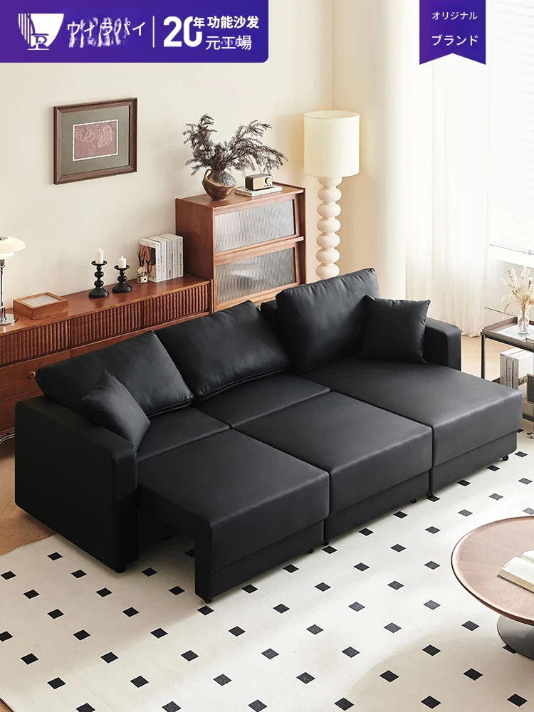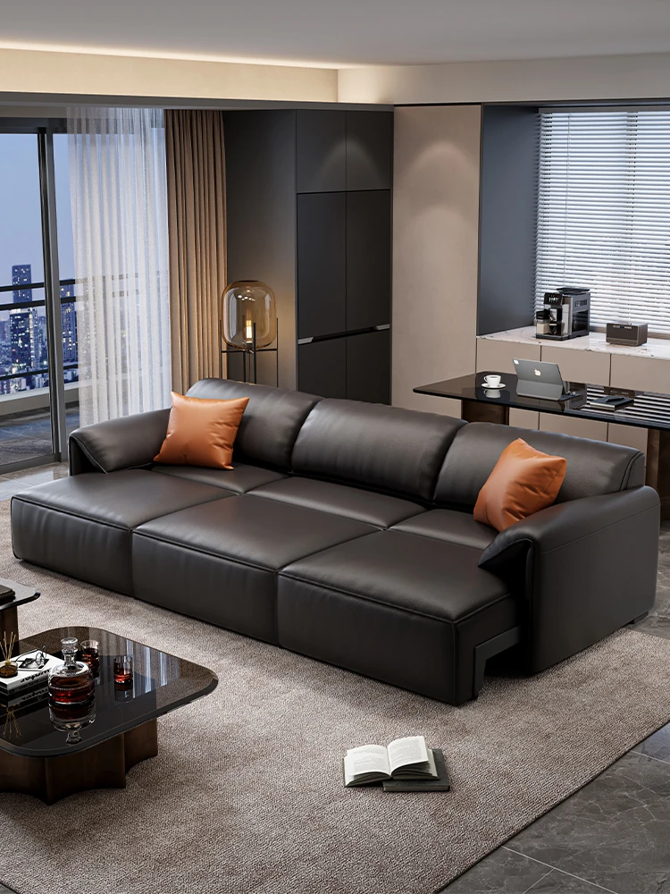 モダンシンプルなデザインの本革電動多機能ソファベッド - リビングルームに最適、オート伸縮機能付きで快適さとスタイルを両立!