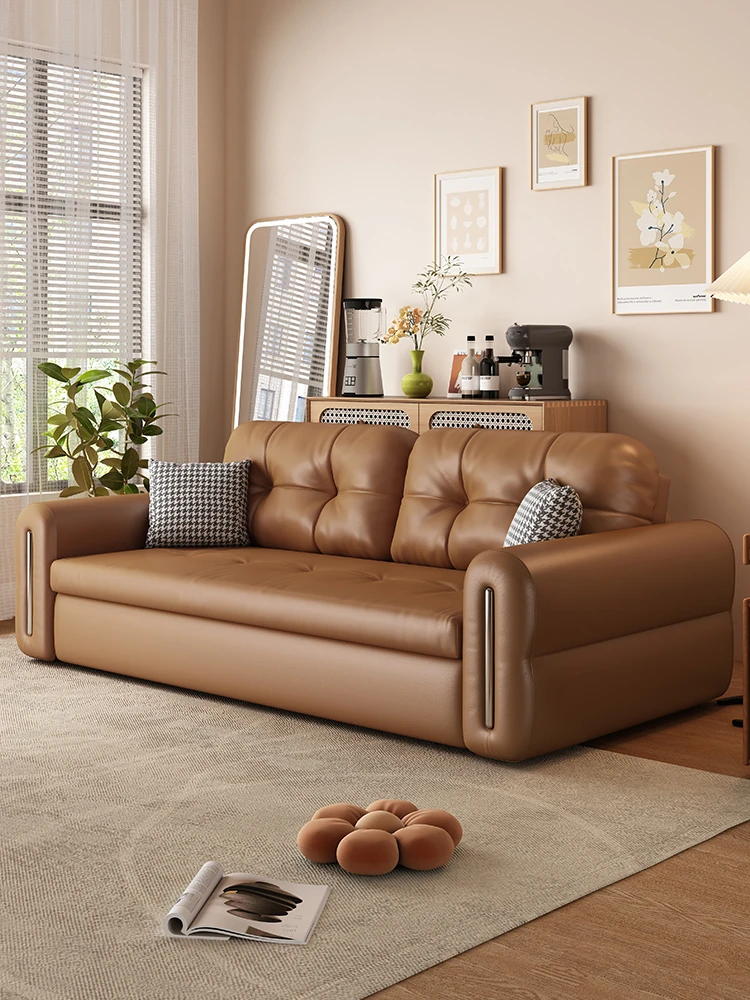 2025新型電動ソファ|小型住宅に最適!レトロ風デザインの本革多機能伸縮ソファベッド|ダブル&トリプル対応【居心地抜群!】