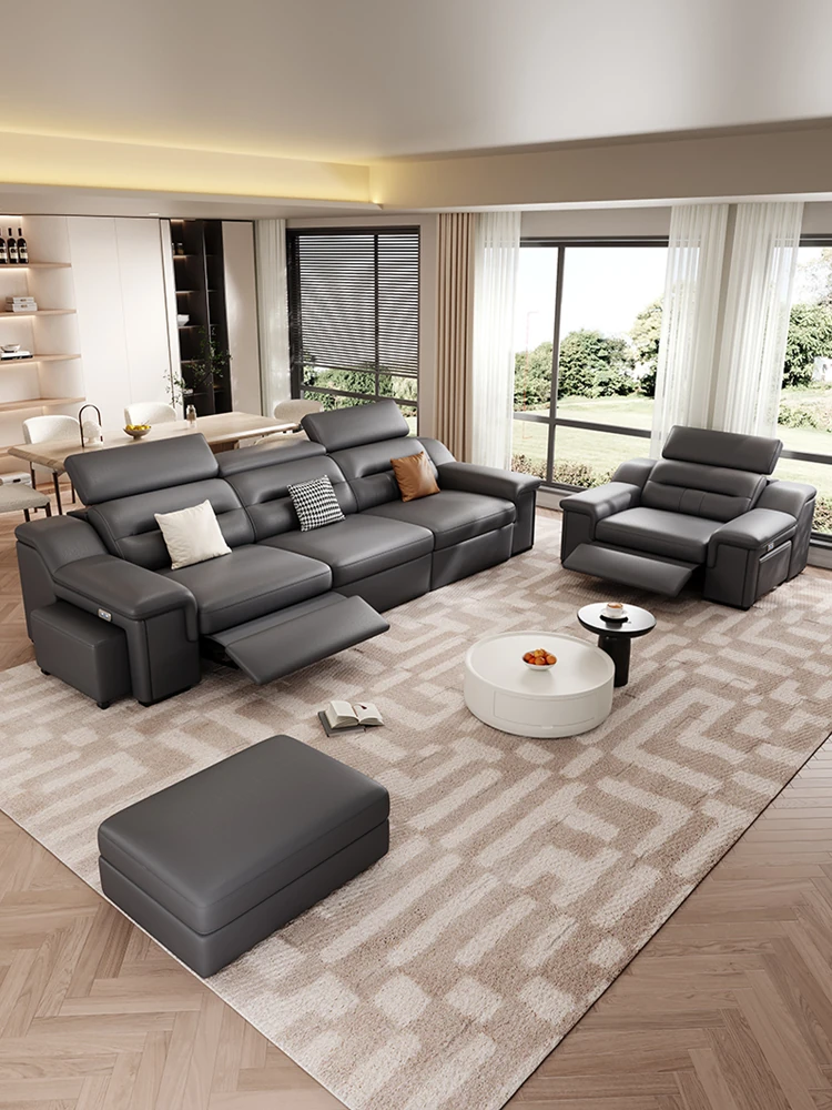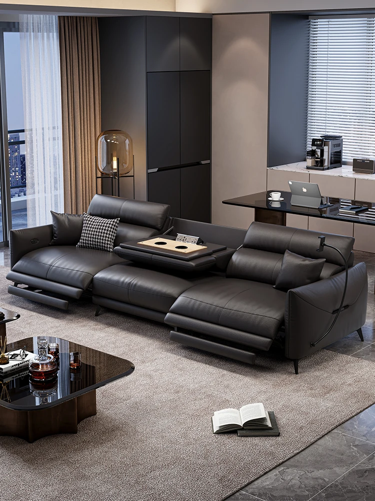 高級本革ソファ 電動機能付き 小型住宅向け イタリアンミニマリズム 家庭用シアターに最適 モダンリビングルームソファ