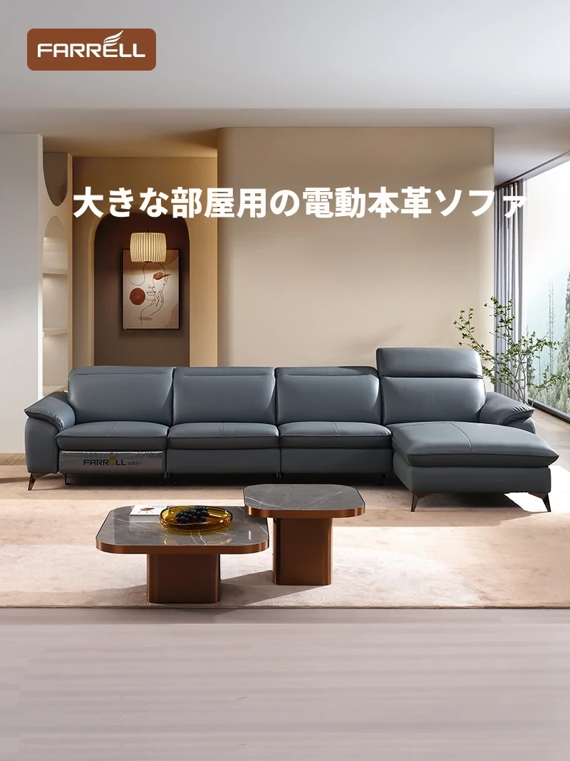 ファレル電動機能ソファ 本革 コーナータイプ 大型モダンシンプルデザイン 高級牛革使用 便利なオットマン付き リビングルームを格上げする贅沢な一品