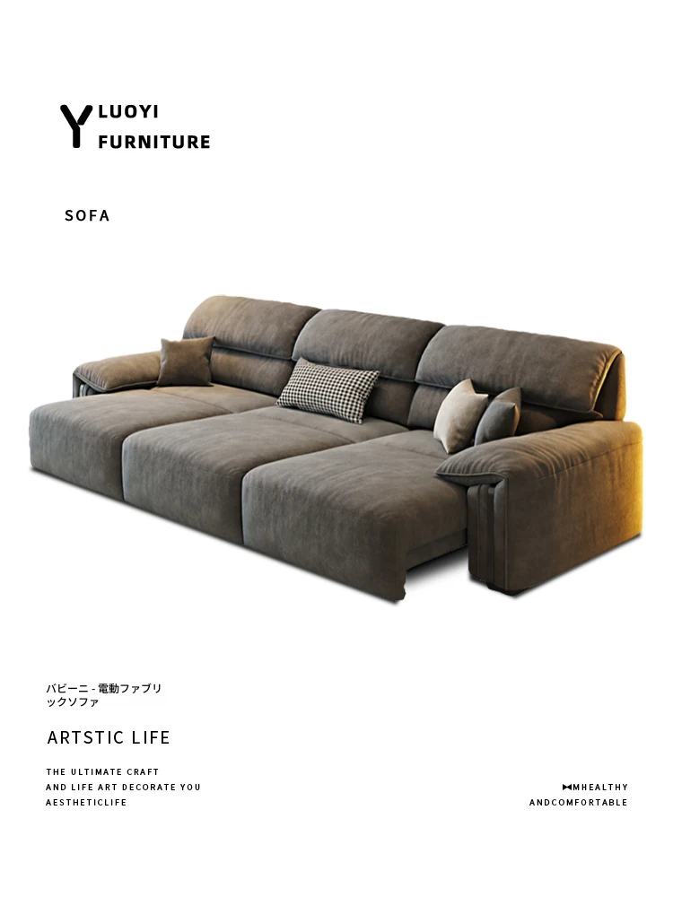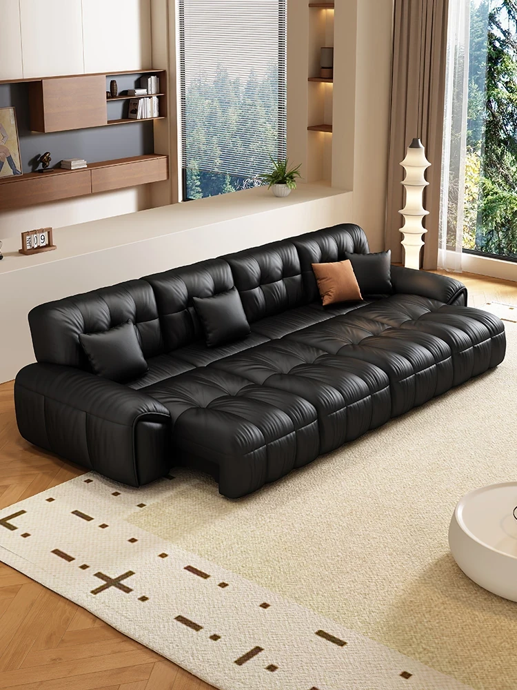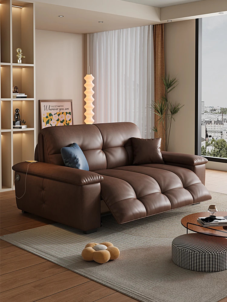 イタリアンミニマリスト電動多機能ソファベッド - リモコン操作で伸縮自在、現代的なデザインの本革ソファ。おしゃれなリビングにぴったり!快適さと機能性を兼ね備えた一品です。