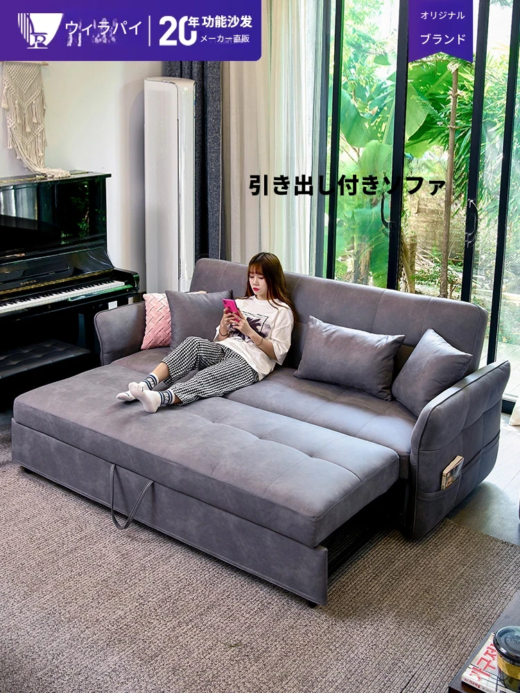 折りたたみ式ソファベッド!猫の爪にも強いテクノロジー布使用、ダブルサイズで多機能な小型住宅に最適!防水加工でお手入れも簡単、快適な睡眠空間を提供します。