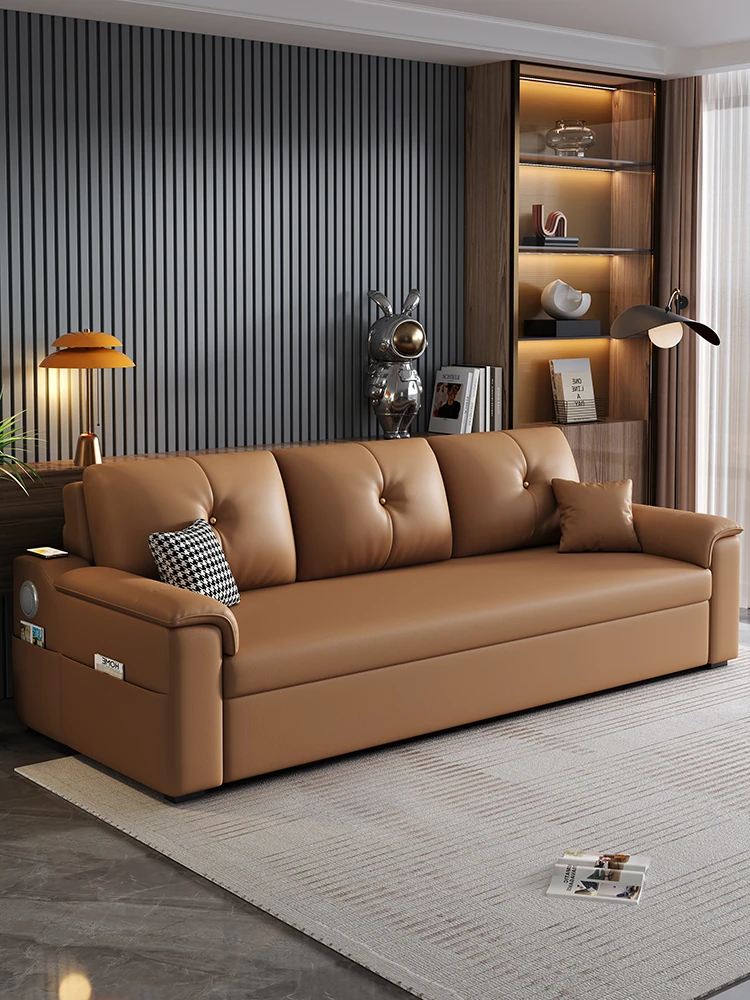 高級本革電動ソファ 小型リビングに最適!多機能なダブル三人用折りたたみソファベッド、2025年新モデルでおしゃれ空間を演出!