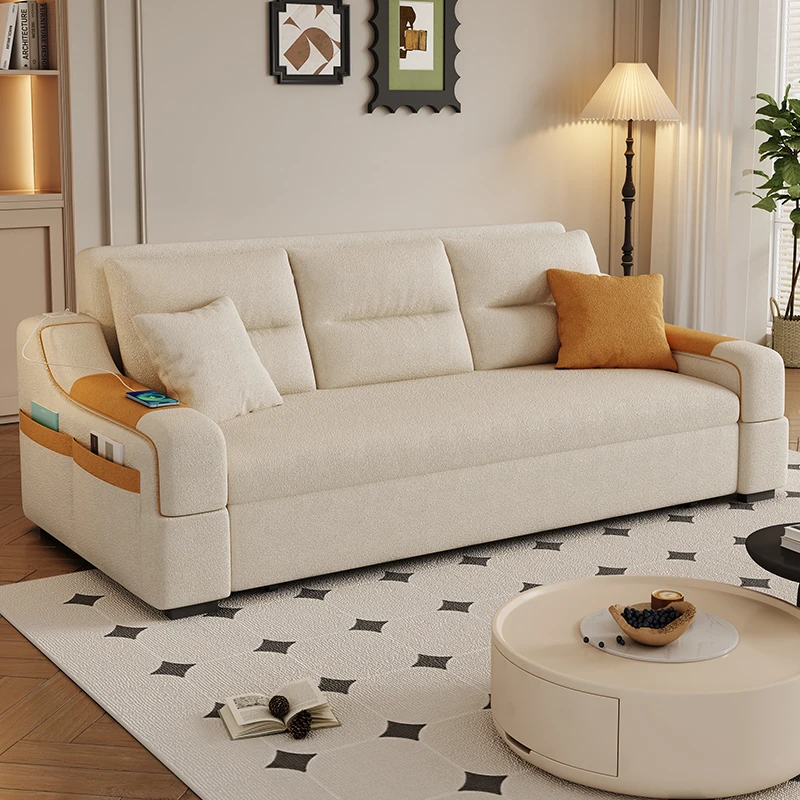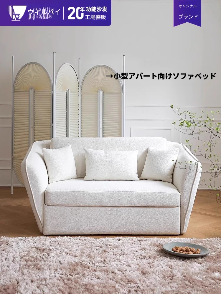 【香港送料無料】クリーミー風ソファベッド 折りたたみ式 二用途リビング向け シンプルモダンデザインの2人用 多機能タイプ