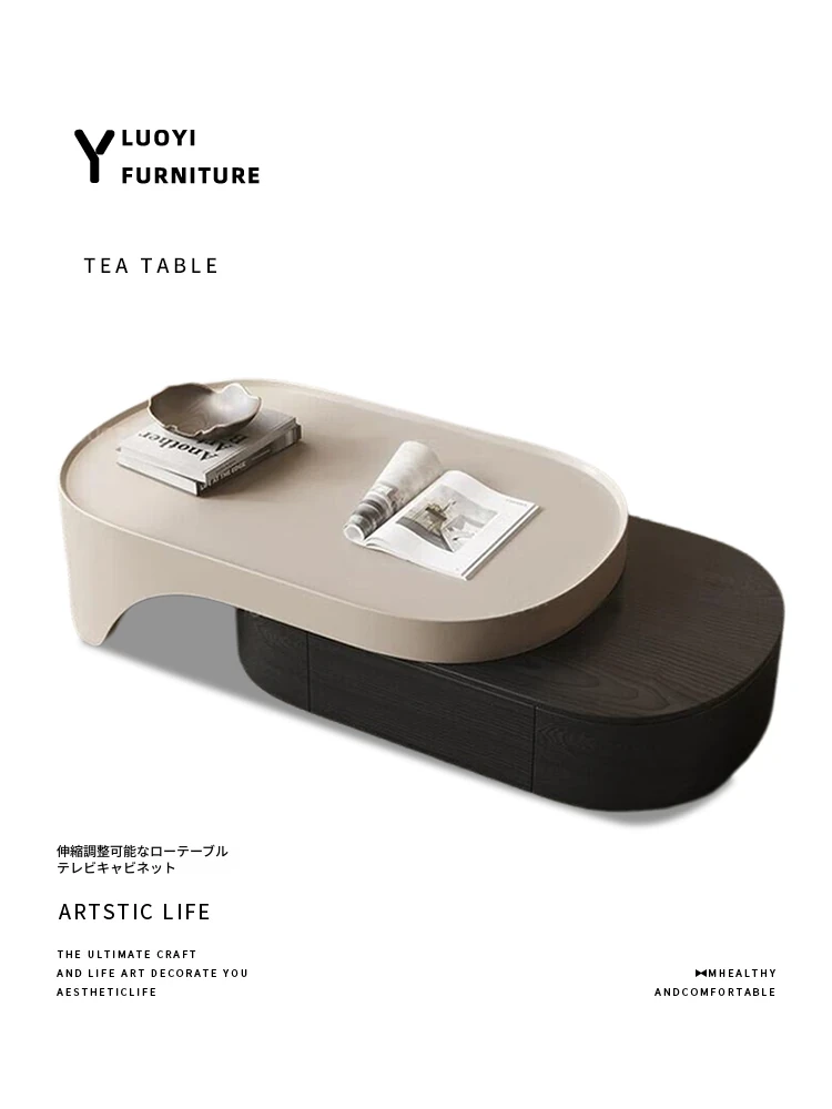イタリアンミニマルヴィンテージコーヒーテーブル - モダンでシンプルなデザイン、小型リビングに最適!伸縮調整可能な機能付き、テレビボードとしても活躍する家用テーブル。洗練されたスタイルでお部屋を彩ります!