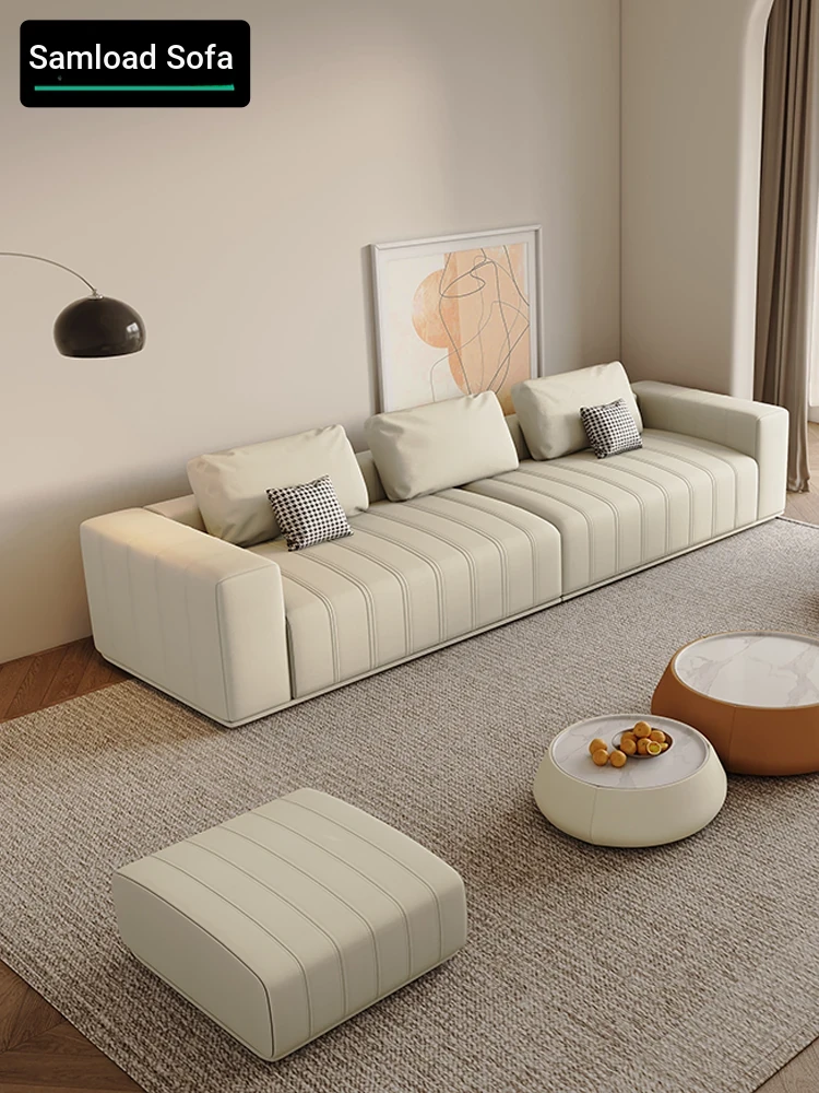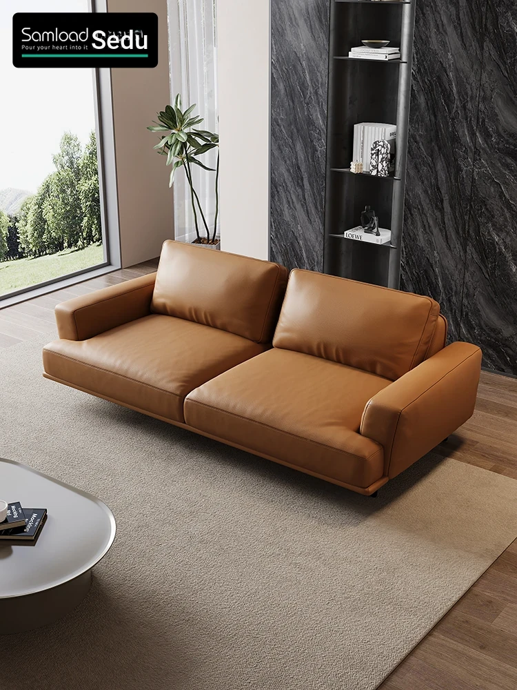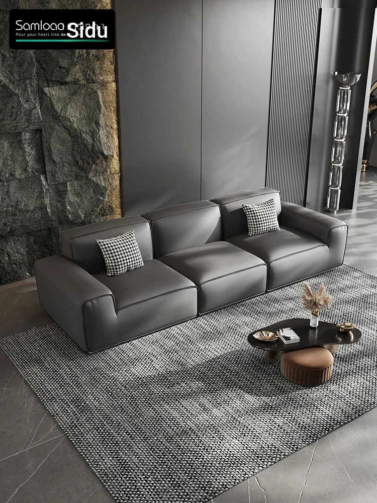 Italian Minimalist Thickened Genuine Leather Living Room Sofa - Modern Simple Luxury Couch for Small Spaces, Straight Design for Maximum Comfort