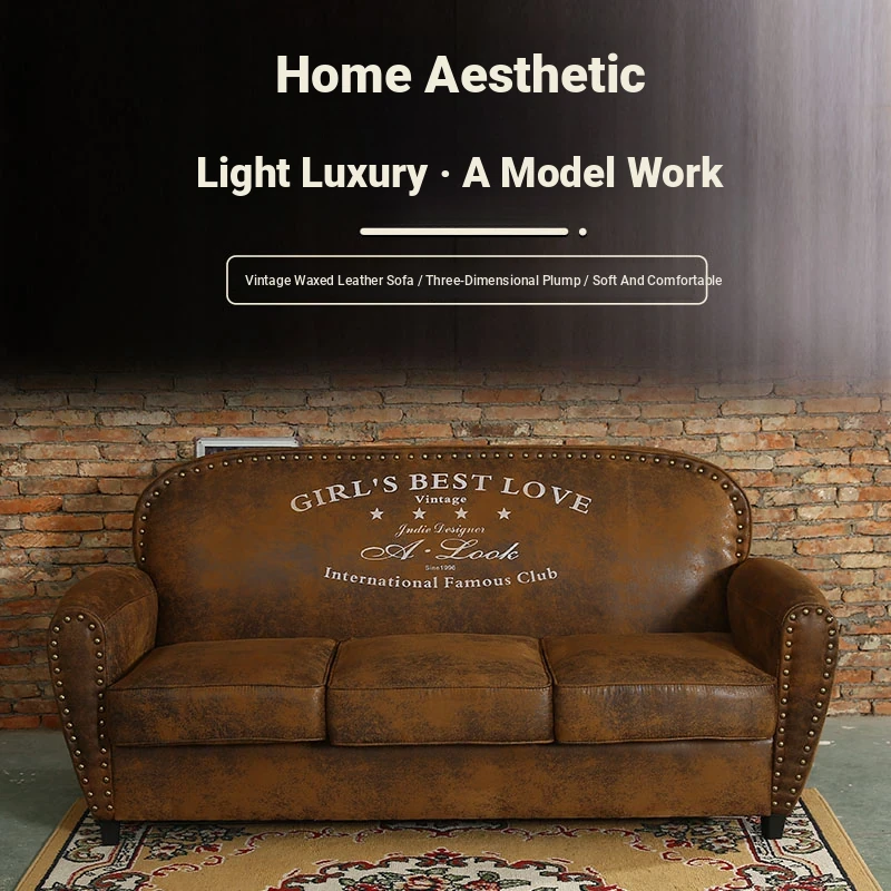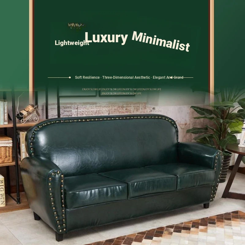 European Style Leather Sofa - Vintage Single, Double, and Triple Seater for Coffee Shops and Small Spaces - Perfect for Bars and Clothing Stores