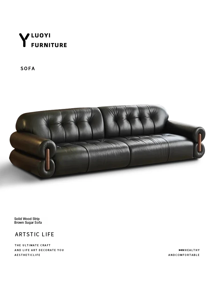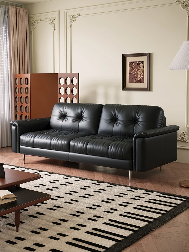 French Vintage Genuine Leather Nebula Sofa - Minimalist Black Down Sofa for Small Spaces - 2025 New Arrival with Classic Charm