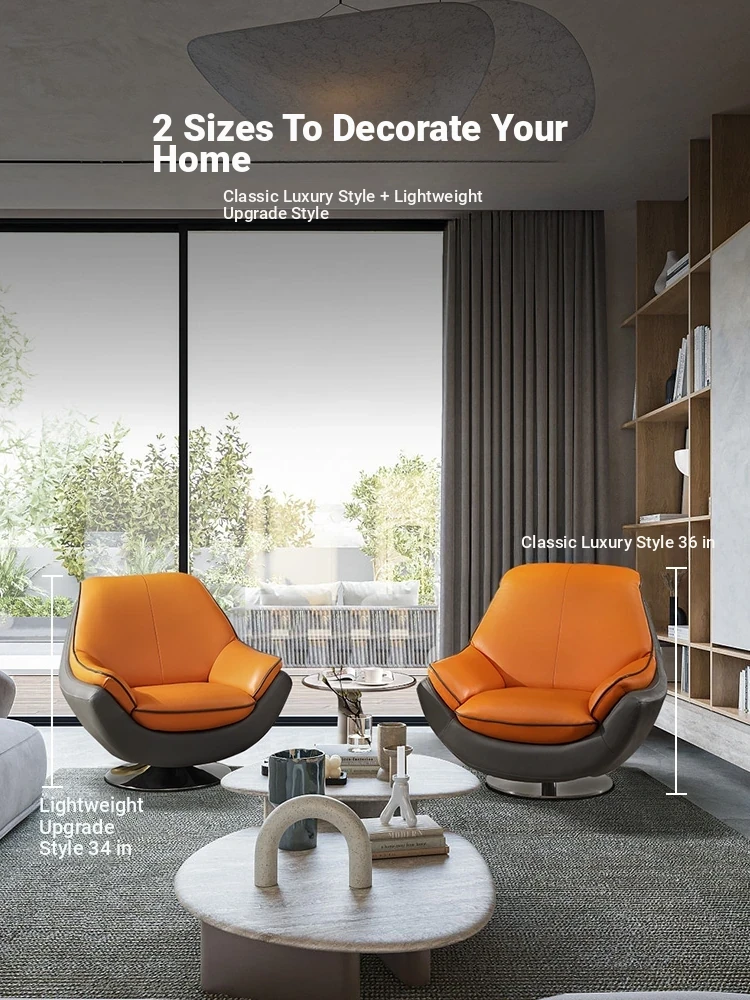 Farrell Luxury Modern Leather Single Sofa Chair with Swivel for Relaxation – Minimalist High-End Armchair for Your Living Room