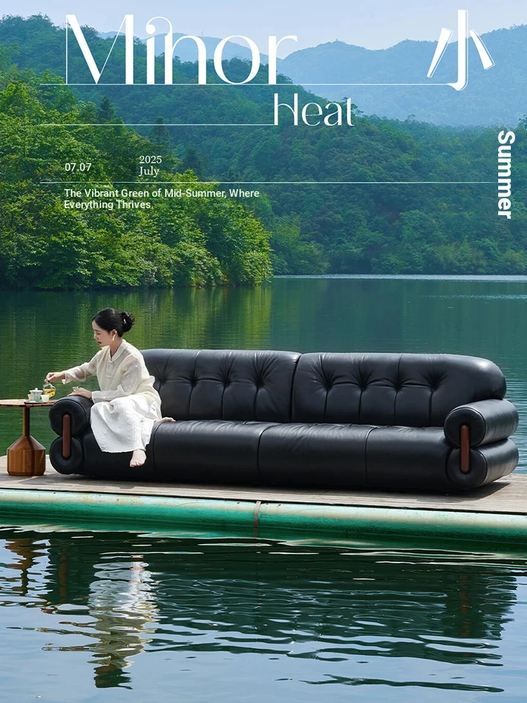 [Free Shipping to Hong Kong] Scandinavian Minimalist Genuine Leather Sofa Set for Small Spaces - Modern 3-Seater Couch for Living Room and Office