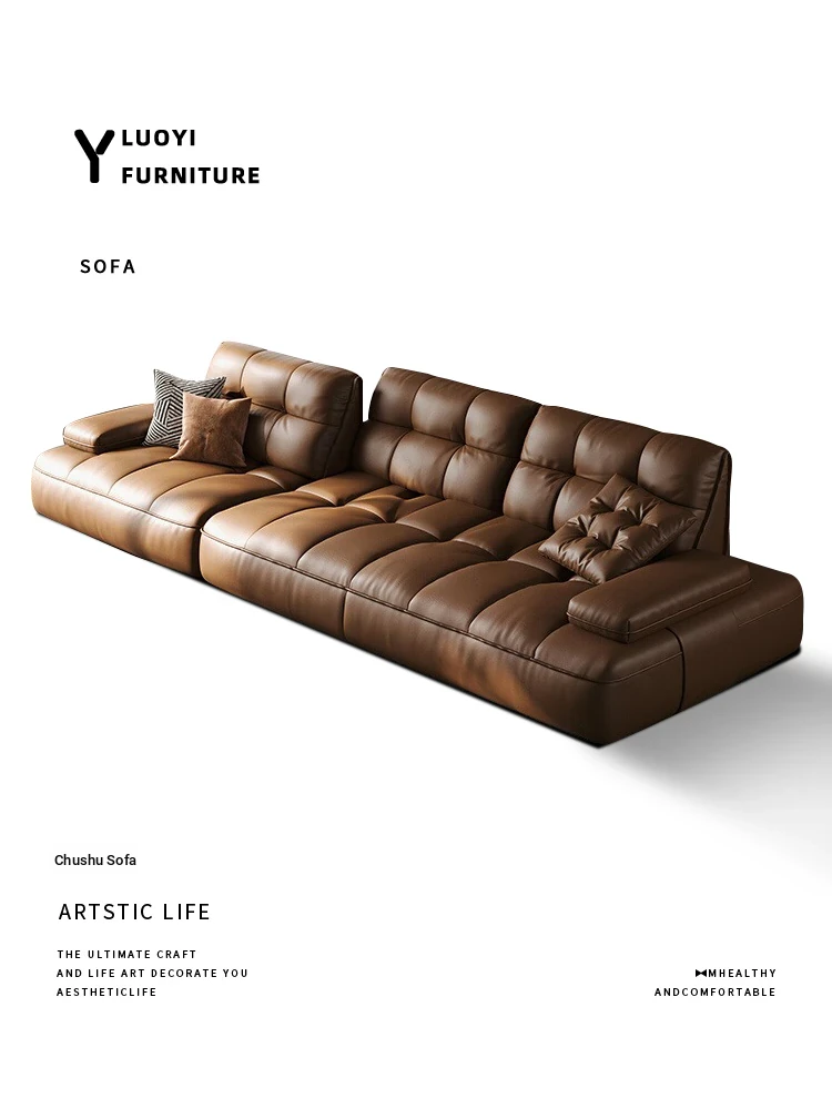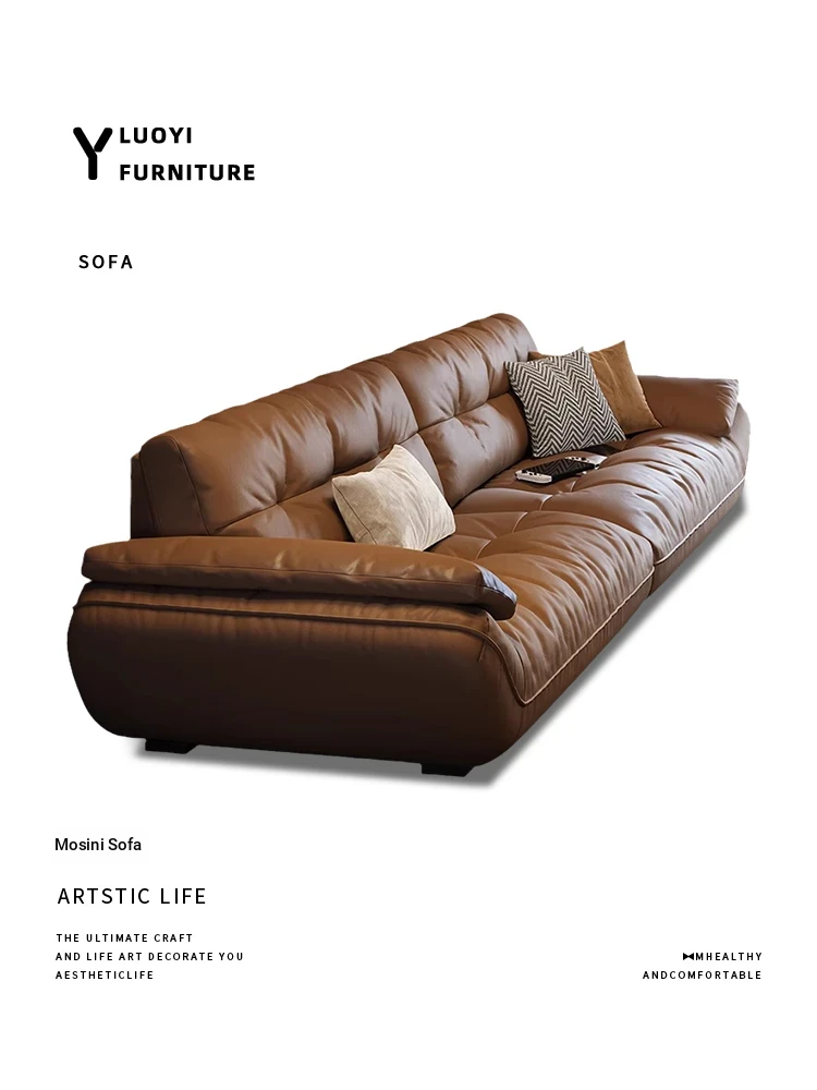 Sailing Cloud Minimalist Leather Sofa - Italian Style Genuine Top-Grain Leather Couch with Straight-Line Design, Perfect for Modern Living Rooms, Luxurious Down-Filled Comfort and Elegant Aesthetics