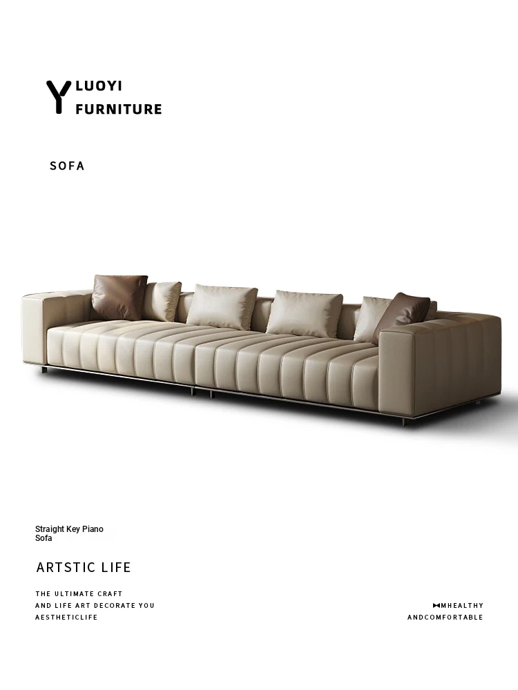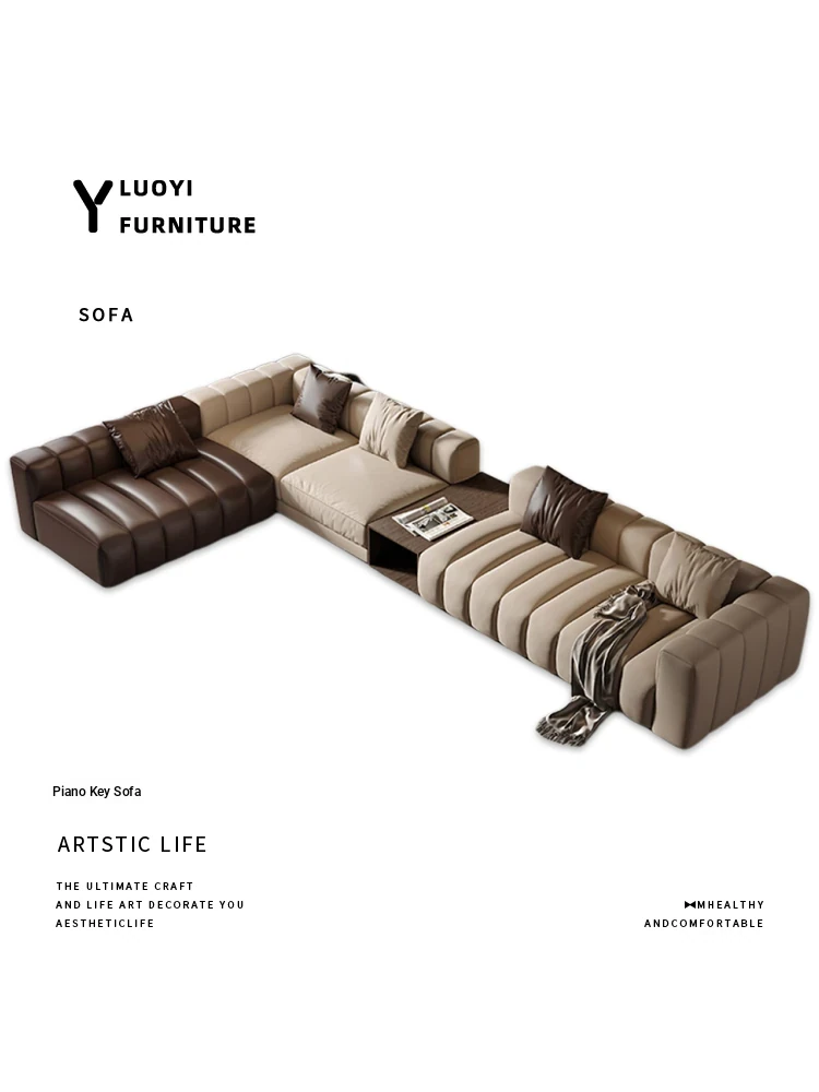 Piano Key Sofa - Italian Luxury Top-Grain Leather Couch for Modern Minimalist Living Room, Ideal for Spacious Villas and Large Homes, Sleek Design with Direct Seating Arrangement
