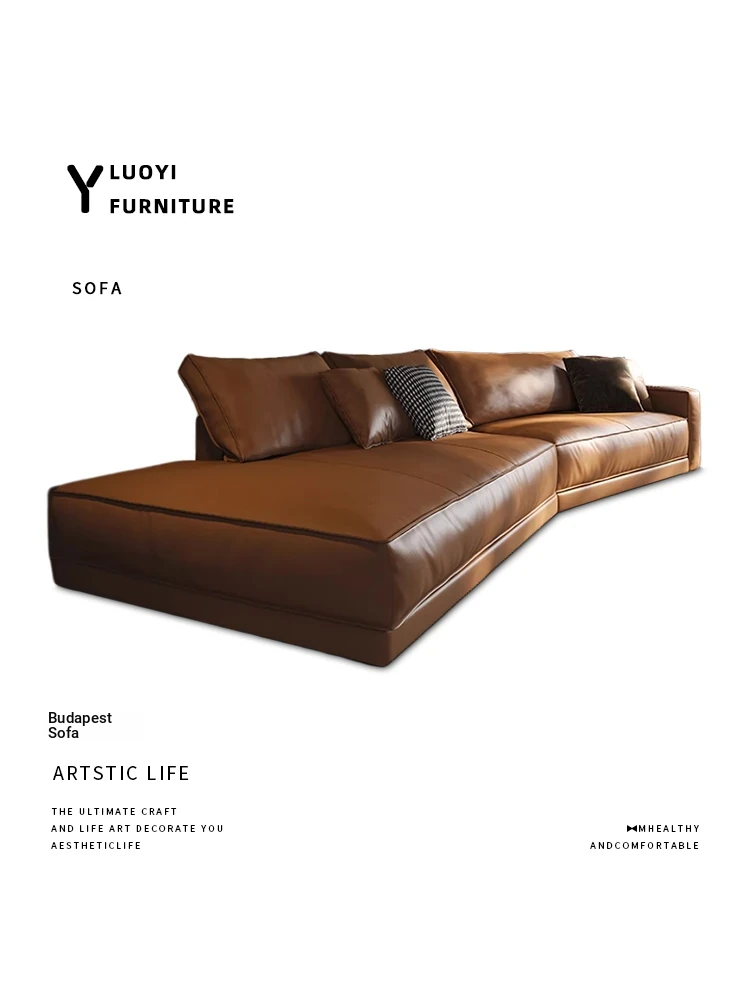 Baxter Budapest Genuine Leather Sofa - Italian Minimalist Top-Grain Cowhide Corner Sofa for Spacious Living Rooms and Villas
