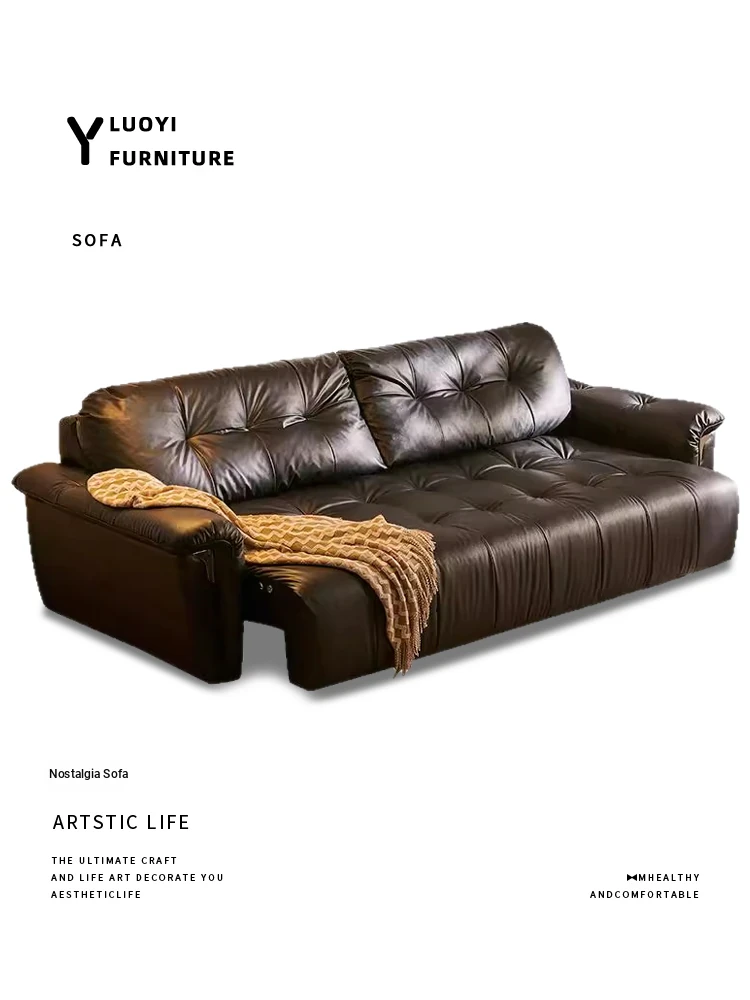 Audrey Genuine Leather Sofa - Modern Minimalist French Vintage Living Room Design, Italian Simplicity, 25-Year New Collection, Retro Style Sofa