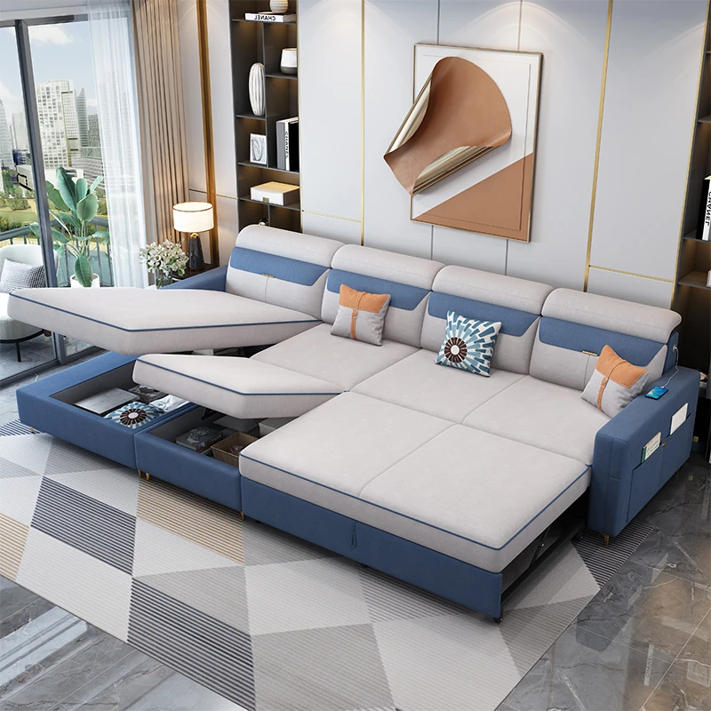 Luxury Cotton-Linen Sofa Bed - Multifunctional Foldable Chaise Lounge for Small Apartments, Perfect for 3-4 People in Living Room