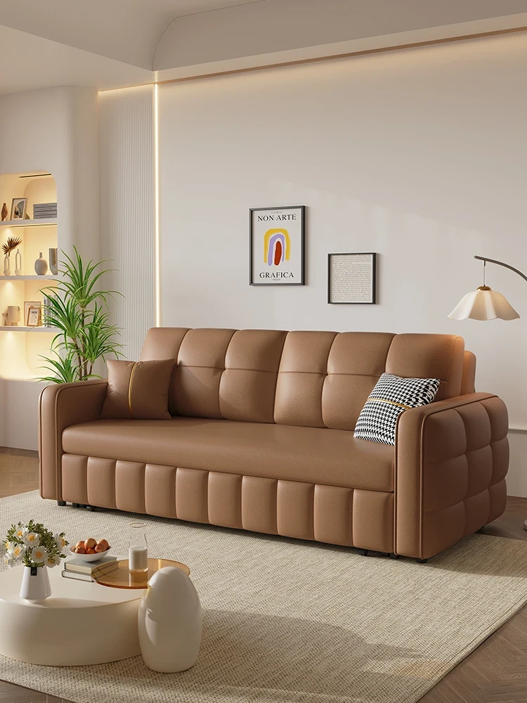 2025 New Arrival: Multifunctional Cream Sofa Bed with Cat Scratch-Proof Leather - Perfect for Small Spaces, Easy to Fold and Pull Out, Double and Triple Layout Options!