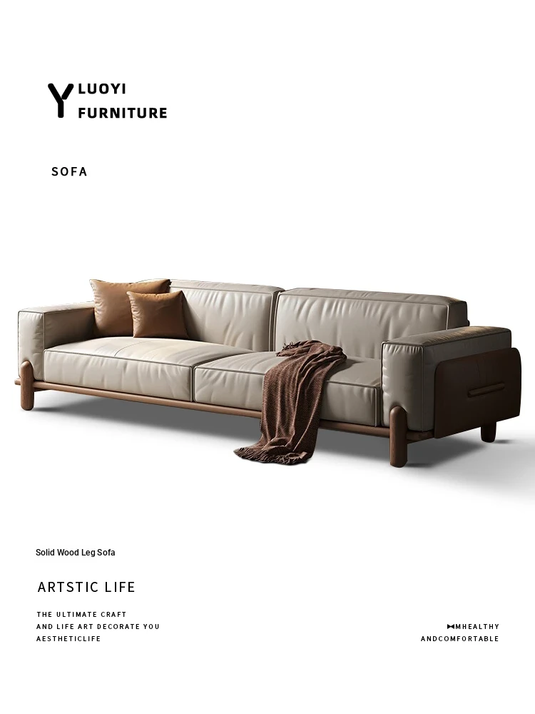 Vintage Genuine Leather Sofa - Retro Luxe Design for Living Room, Featuring Adjustable High Backrest and Solid Black Walnut Wood Frame, Perfect for Stylish Comfort!