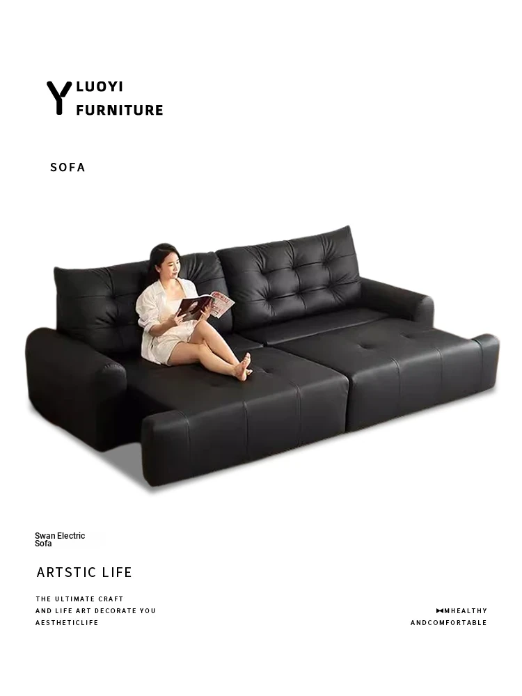 Electric Leather Sofa with Piano Key Design - Italian Minimalist Style, Top-Grain Cowhide, Perfect for Small Living Rooms, Adjustable and Convertible Sofa Bed
