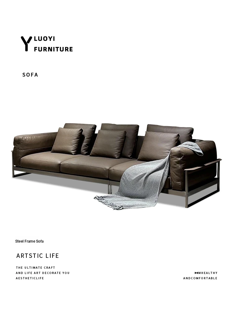 Minimalist Italian Steel Frame Leather Sofa - Vintage 2025 Collection, Modular Design for Modern Living Rooms