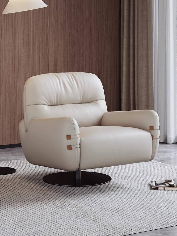 Italian Minimalist Genuine Leather Single Chair - Modern Cream Style Rotatable Lazy Sofa for Relaxing in Living Rooms and Bedrooms