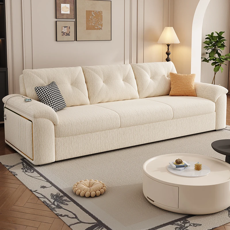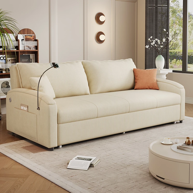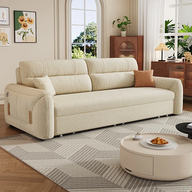 2025 New Cream-Style Convertible Sofa Bed - Multi-functional Cotton-Linen Leather Design for Small Apartments, Perfect for Living Rooms and Can Be Used as a Bed