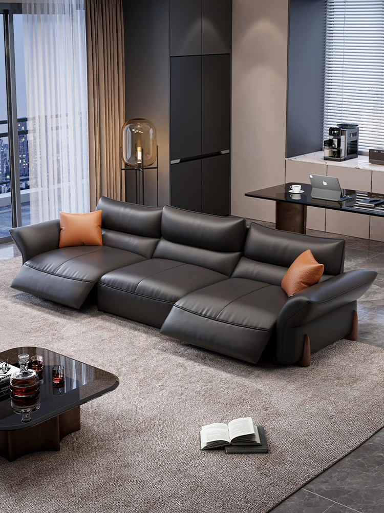 Genuine Leather Electric Reclining Sofa - Adjustable Space Capsule Design for Home Theater, Three-Seater with Zero Wall Clearance for Living Rooms