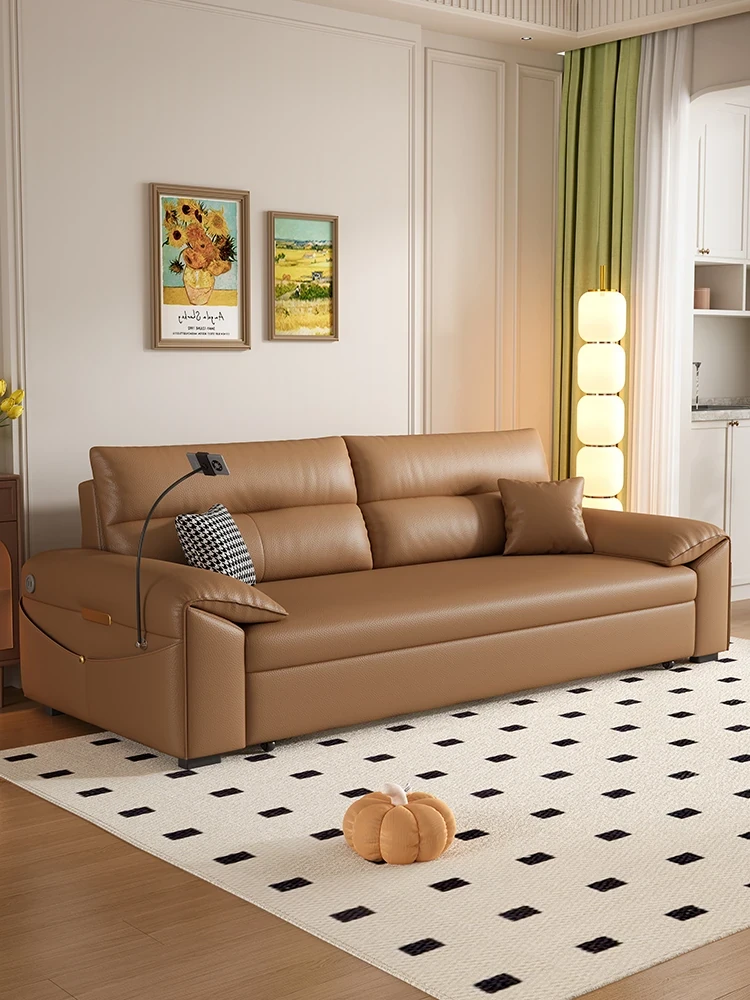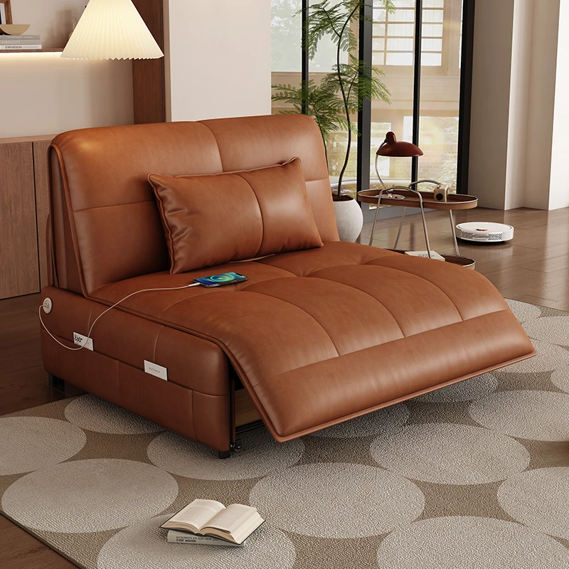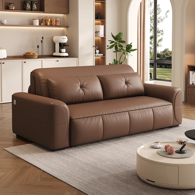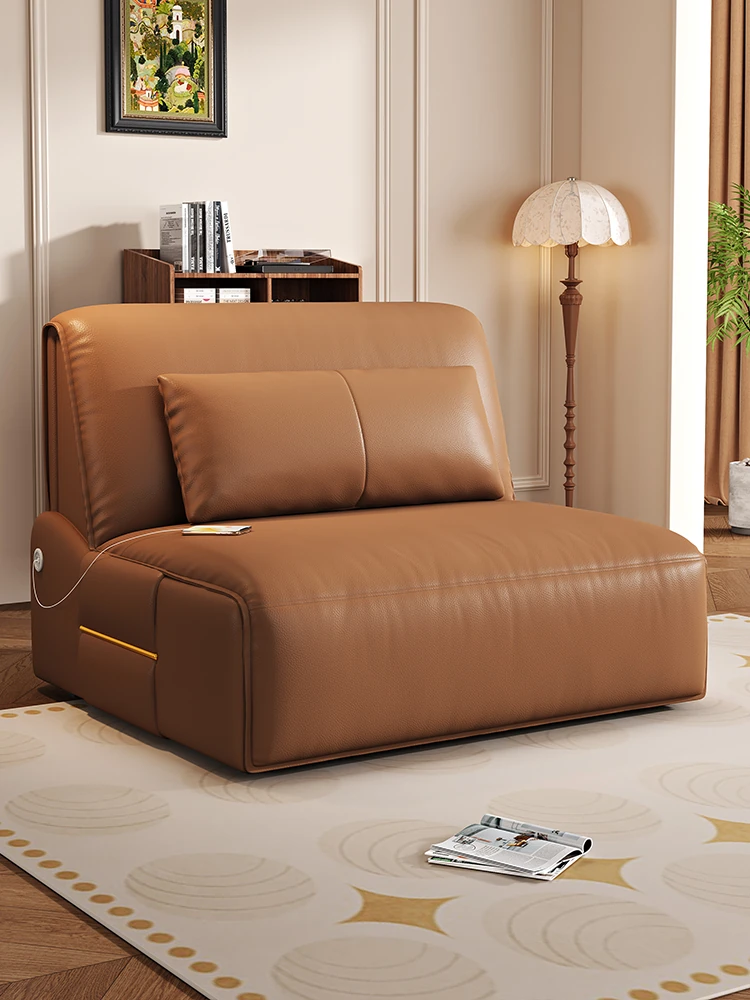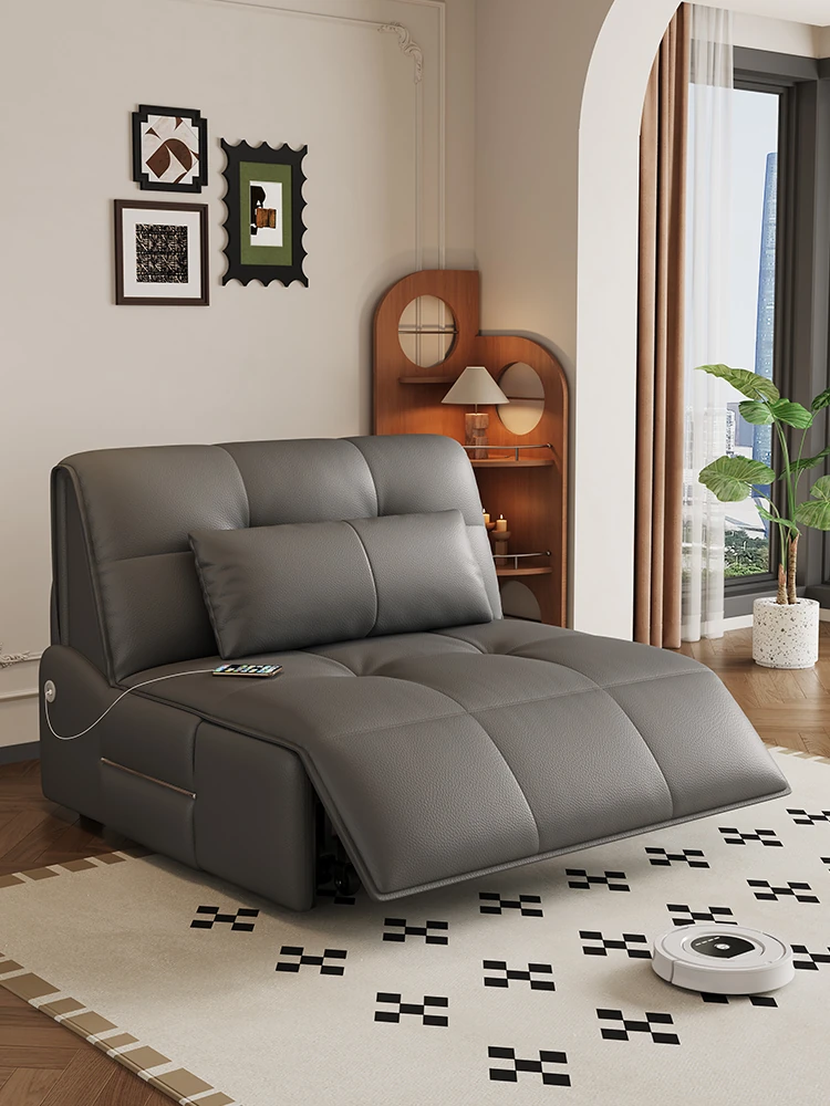 2025 New Smart Napa Genuine Leather Electric Sofa Bed - Foldable Dual-Use, Ideal for Small Living Rooms, Multi-Functional Expandable Bed