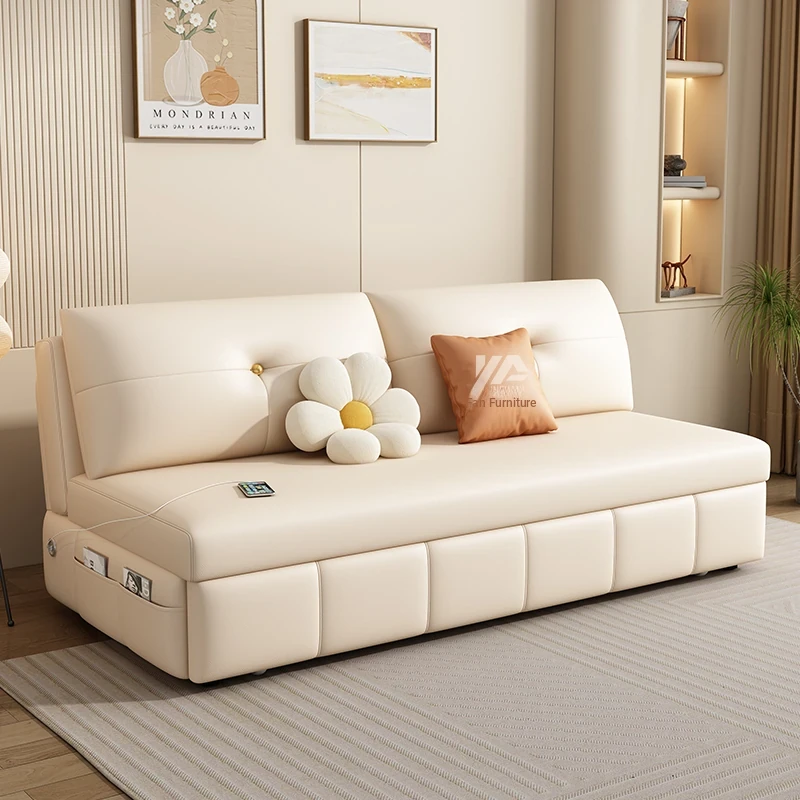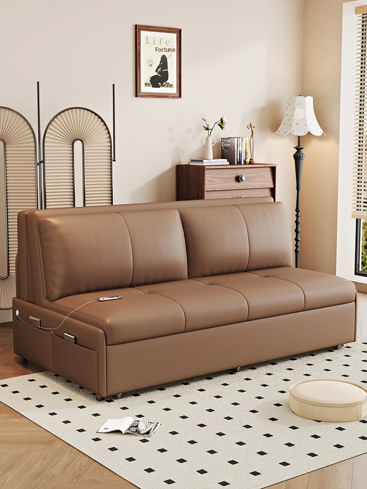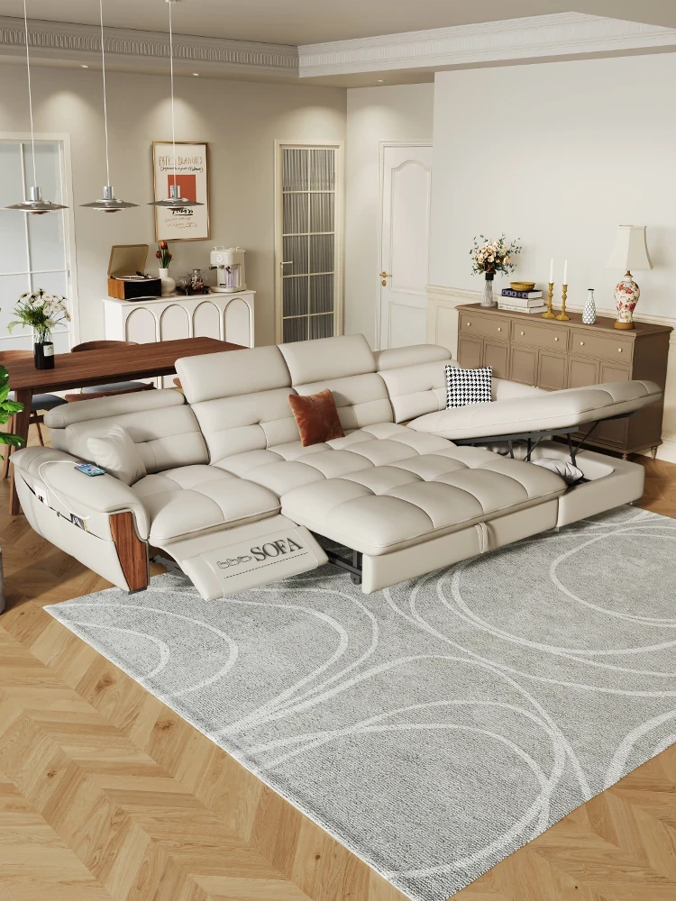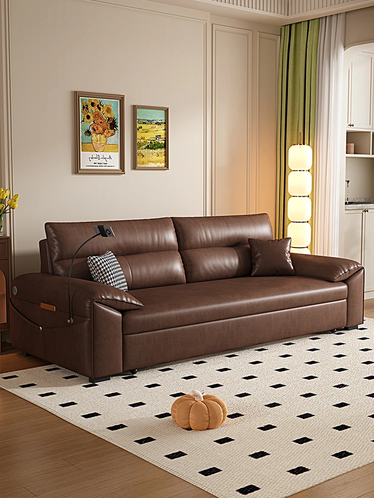 2025 New Smart Napa Genuine Leather Electric Sofa Bed - Foldable Dual-Use, Ideal for Small Living Rooms, Multi-Functional Expandable Bed