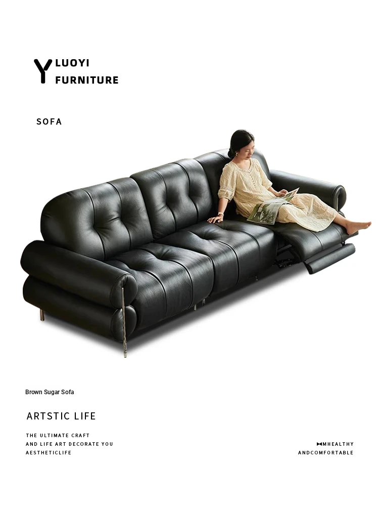 French Vintage Multi-Functional Reclining Electric Sofa - Adjustable Black Sugar Sofa Perfect for Wall Placement, Ideal for Retro Home Décor