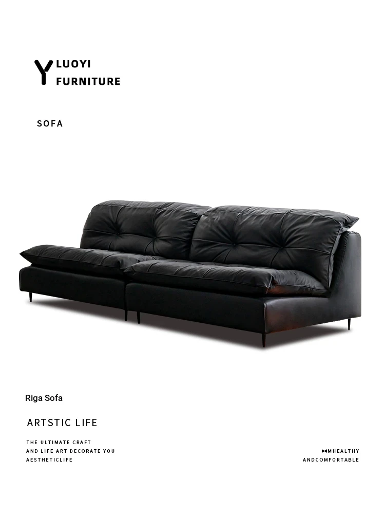 French Vintage Genuine Leather Nebula Sofa - Minimalist Black Down Sofa for Small Spaces - 2025 New Arrival with Classic Charm