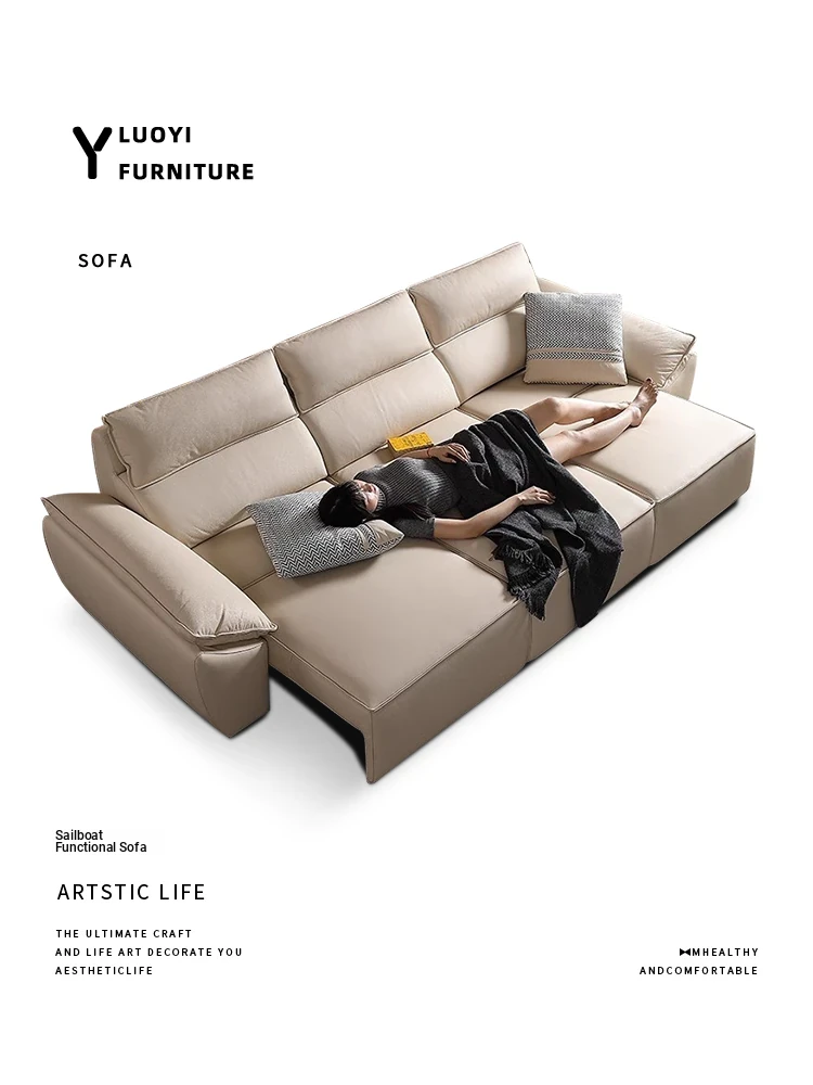 Minimalist Cream-Style Wall-Free Electric Sailboat Sofa Bed with Adjustable Remote Control – Versatile and Space-Saving Design for Ultimate Comfort and Style