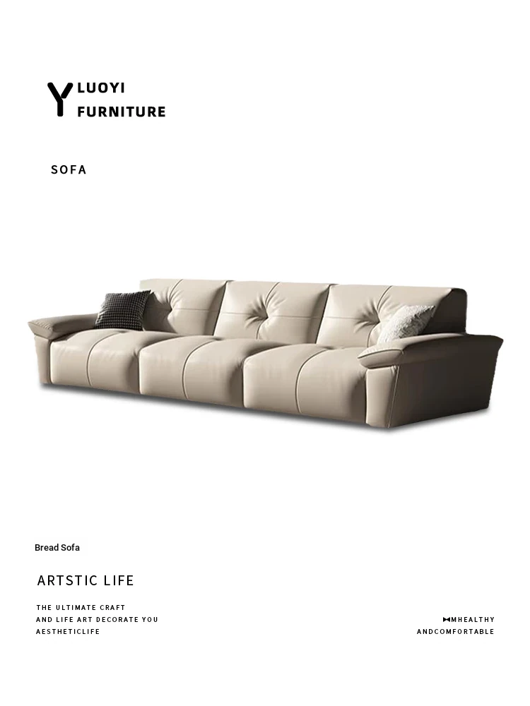 Minimalist Italian Bread Sofa - Luxurious First Layer Cowhide for Small Villas and Living Rooms - Chic New Design in Nordic Style