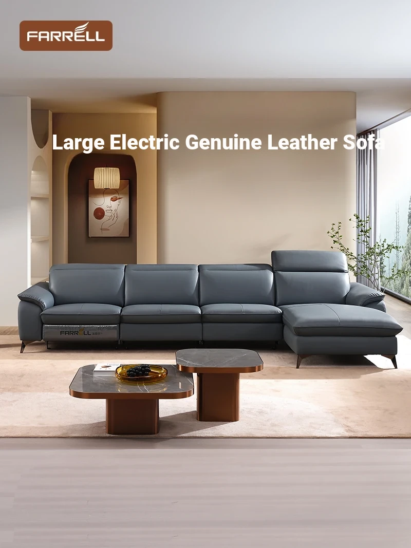 Farrell Electric Reclining Sofa - Genuine Leather Corner Sectional for Spacious Living Rooms, Modern Minimalist Design with Top-Grain Cowhide and Chaise Lounge
