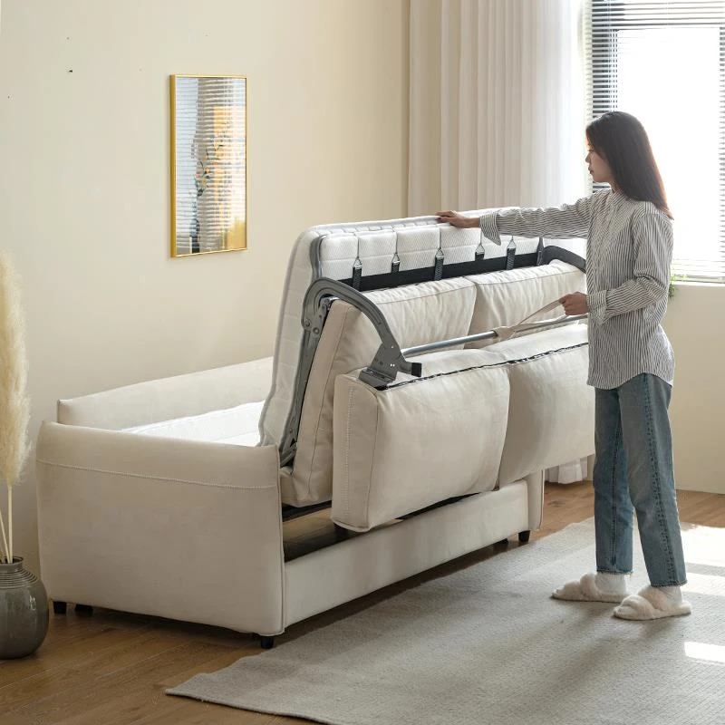 Cat Scratch Resistant Cream Sofa Bed - Multifunctional Folding Couch for Small Spaces, Perfect for Living Rooms, Dual Use for Singles or Couples - Trending New Arrival 2024