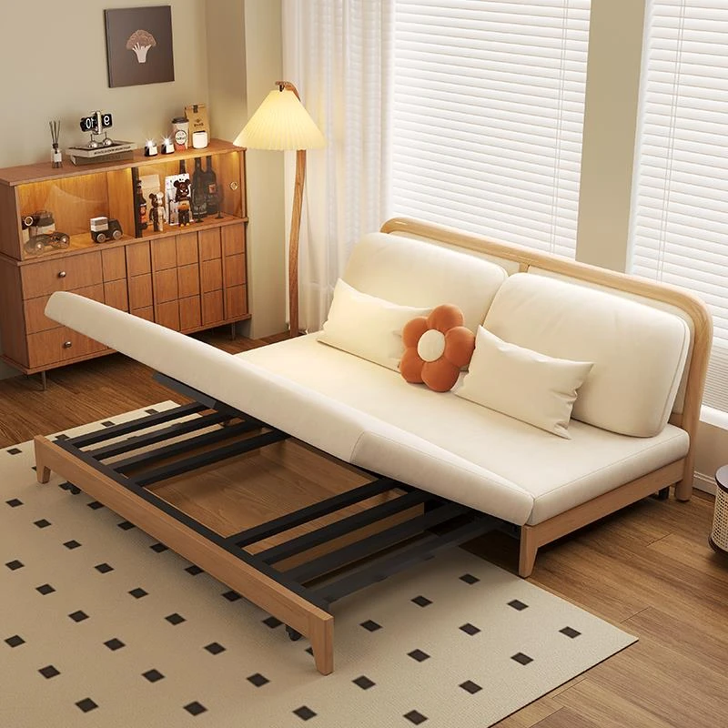 【Free Shipping to Hong Kong】Modern Minimalist Solid Wood Sofa Bed - Versatile, Foldable Design Perfect for Living Room and Study Rooms, Ideal for Small Spaces