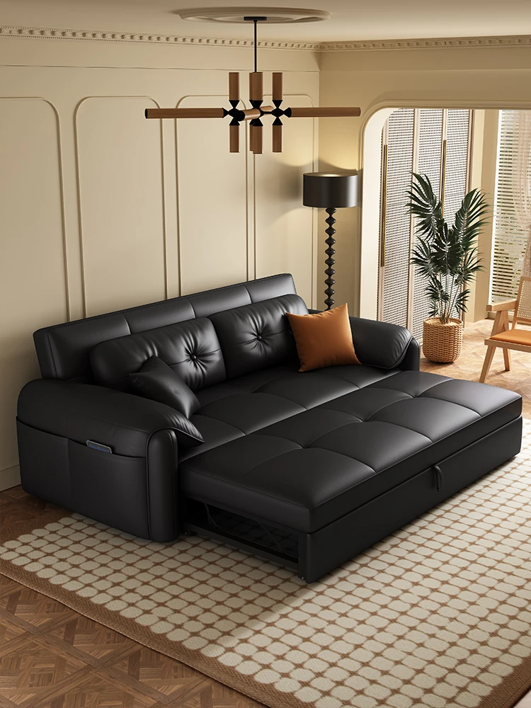 Modern Minimalist Straight-Line Top-Grain Leather Electric Multifunctional Sofa Bed – Versatile, Automatic, and Expandable for Living Room Use