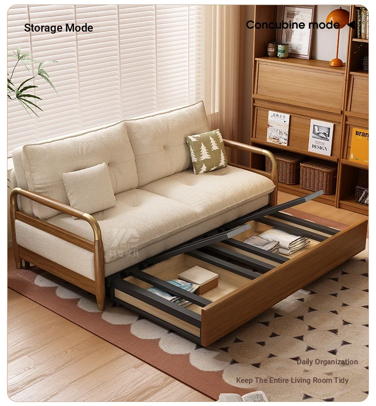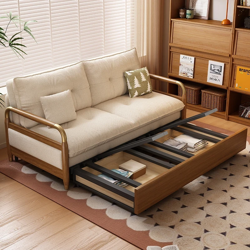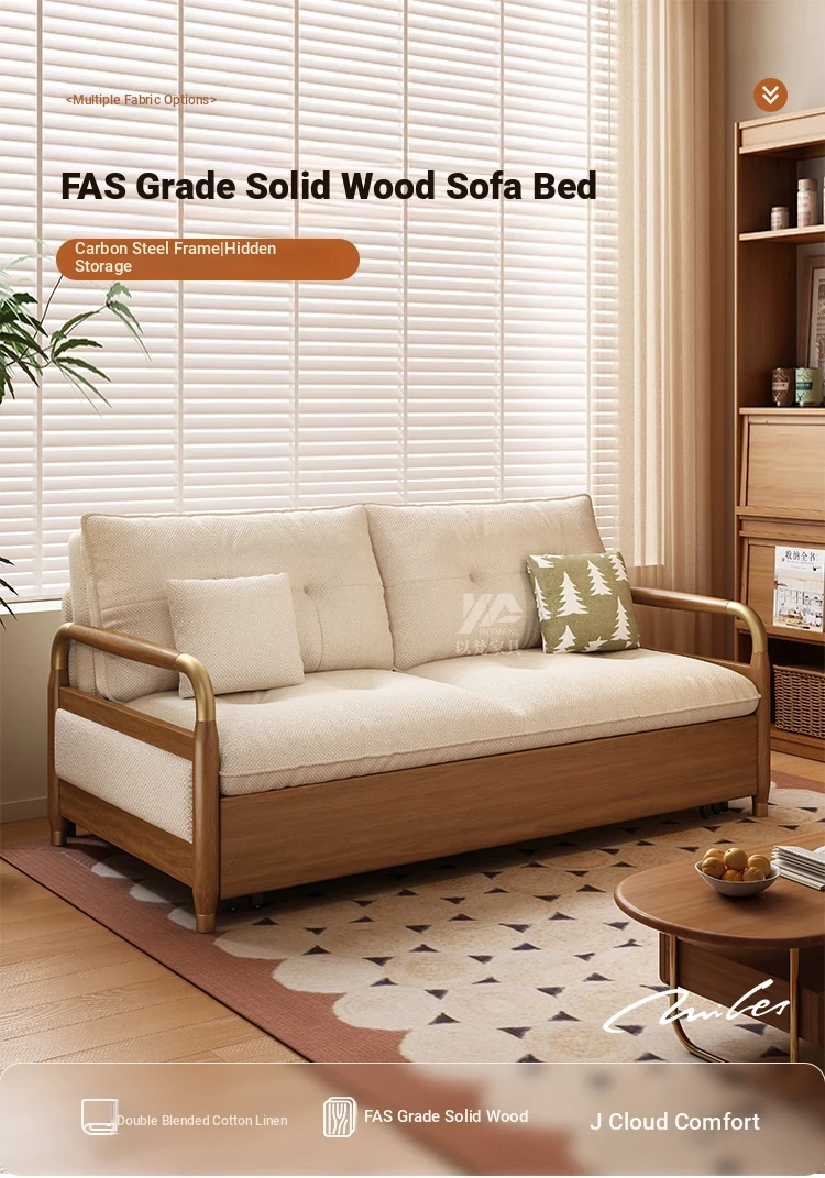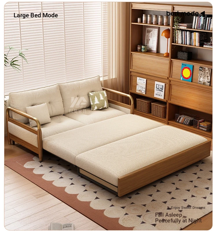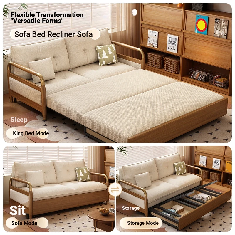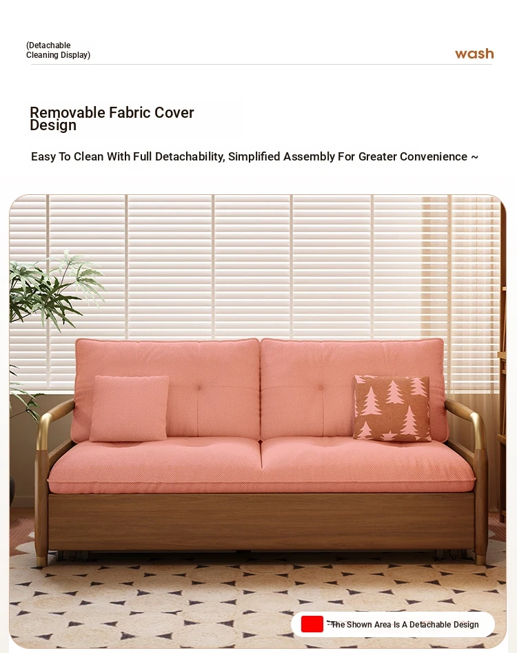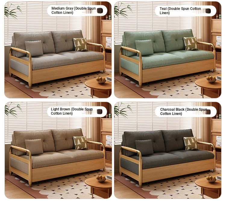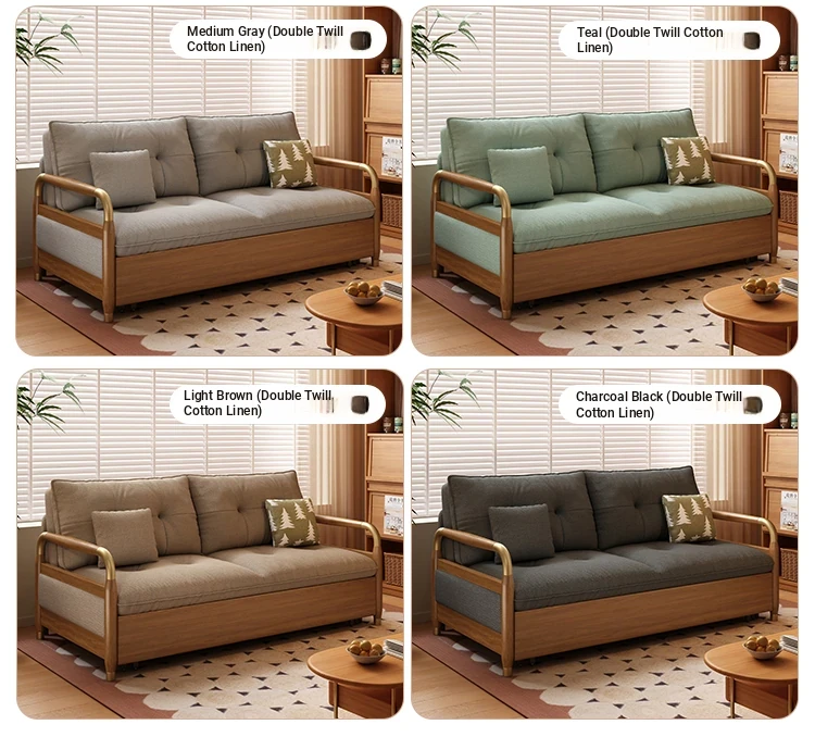 2025 Multifunctional Solid Wood Sofa Bed - Space-Saving, Detachable & Washable Cotton-Linen Design for Small Apartments and Home Offices - Ideal for Long-Term Sleeping and Versatile Use