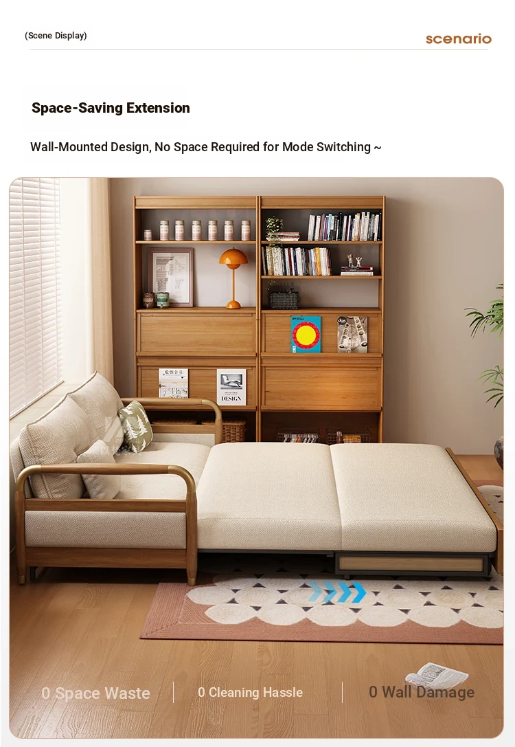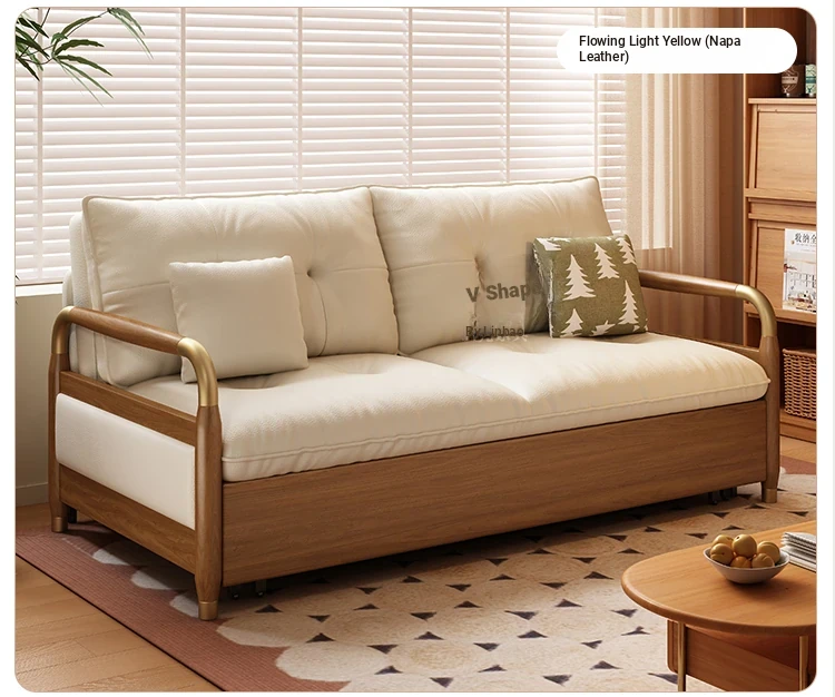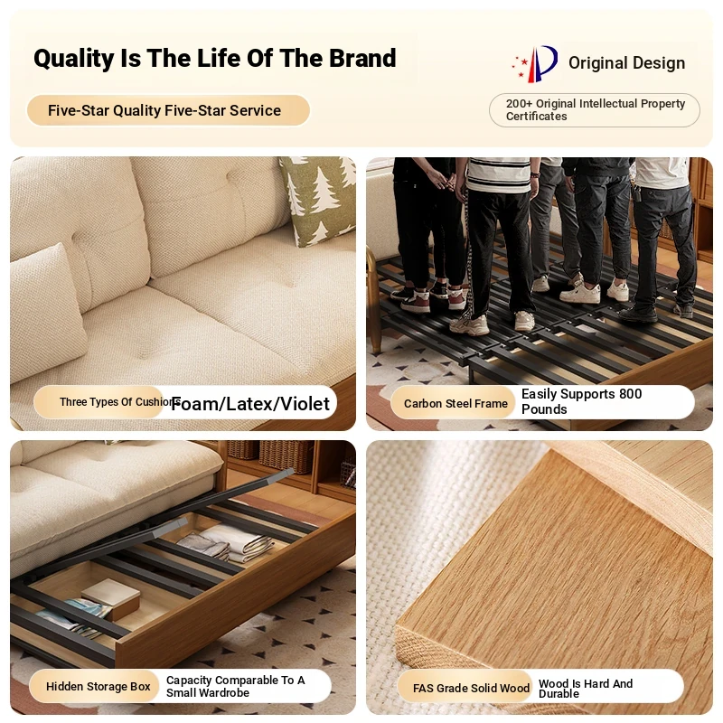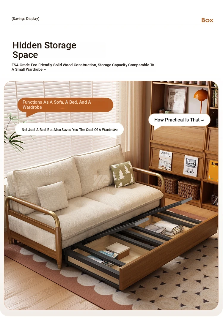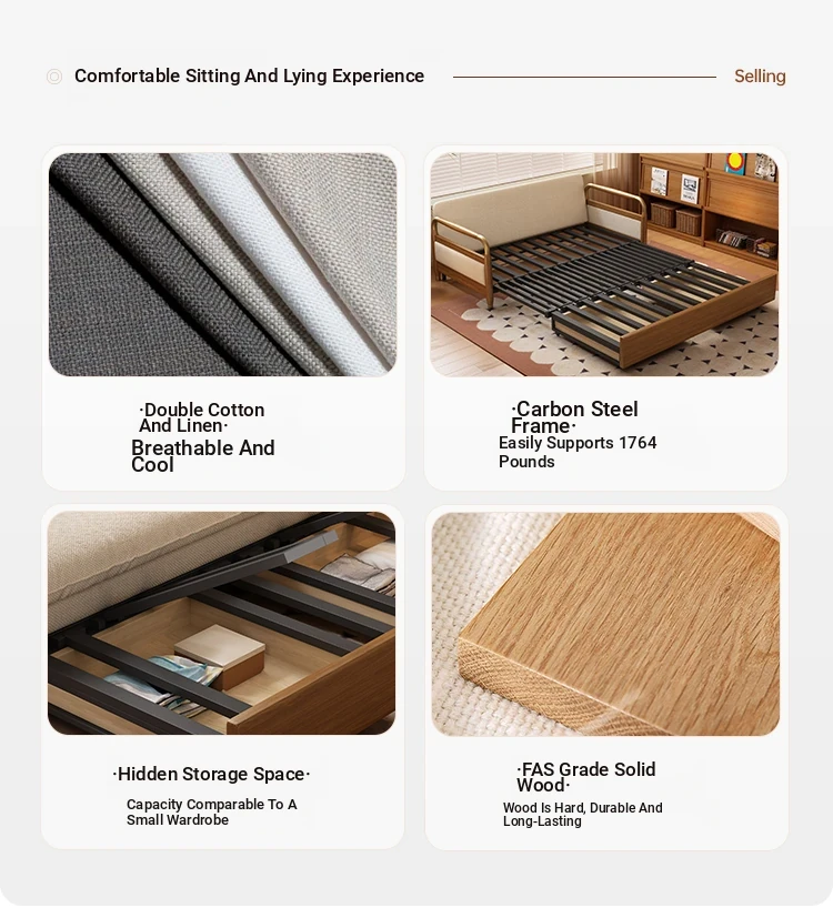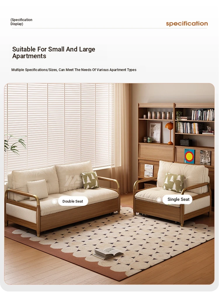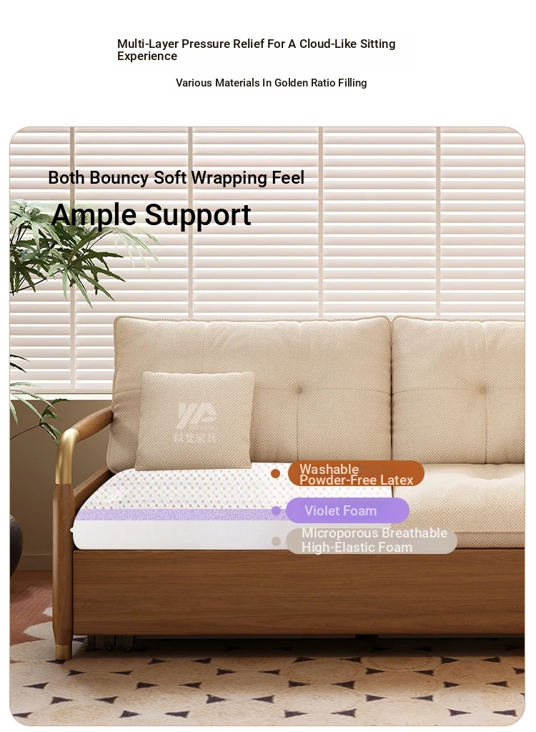 2025 Multifunctional Solid Wood Sofa Bed - Space-Saving, Detachable & Washable Cotton-Linen Design for Small Apartments and Home Offices - Ideal for Long-Term Sleeping and Versatile Use