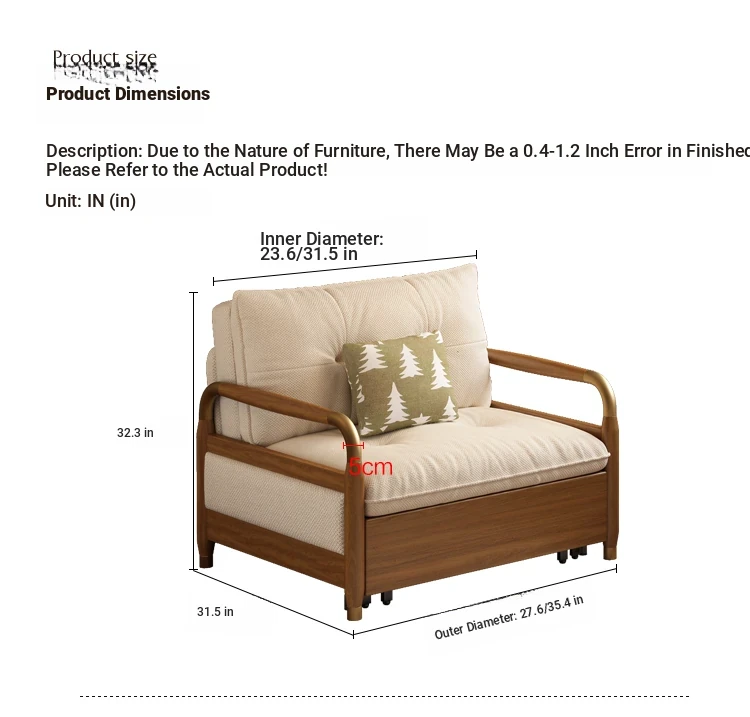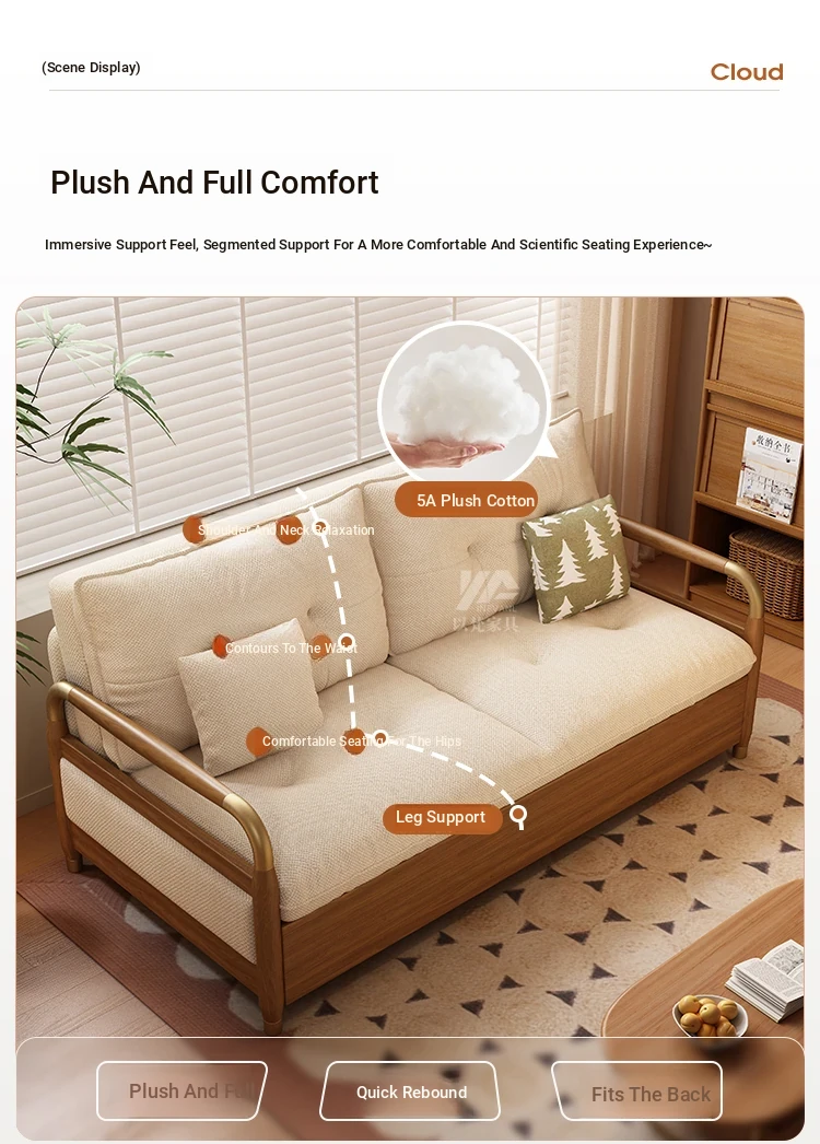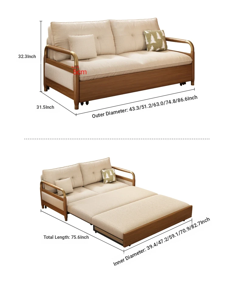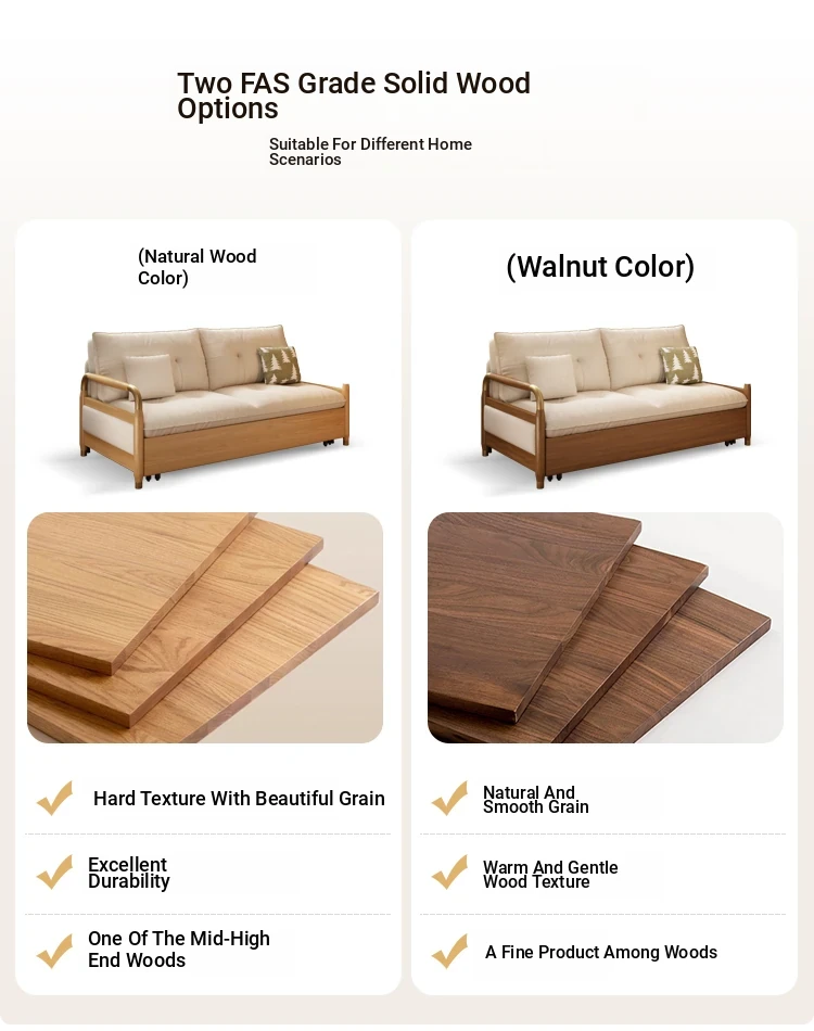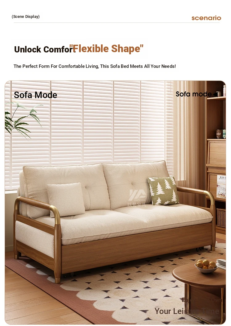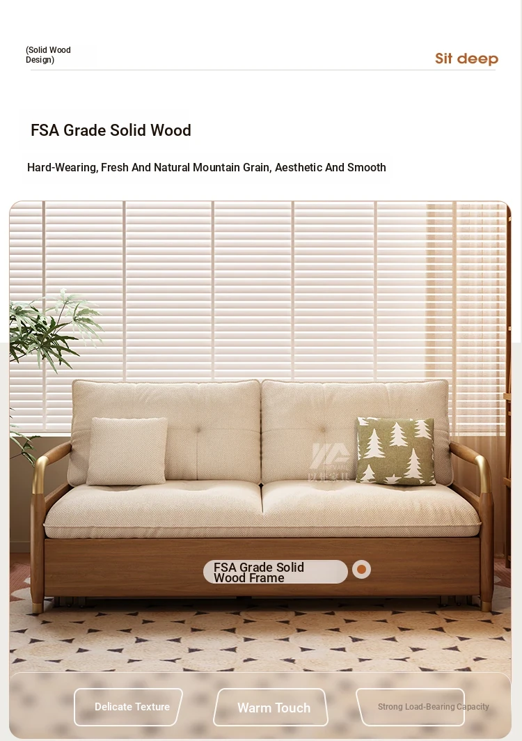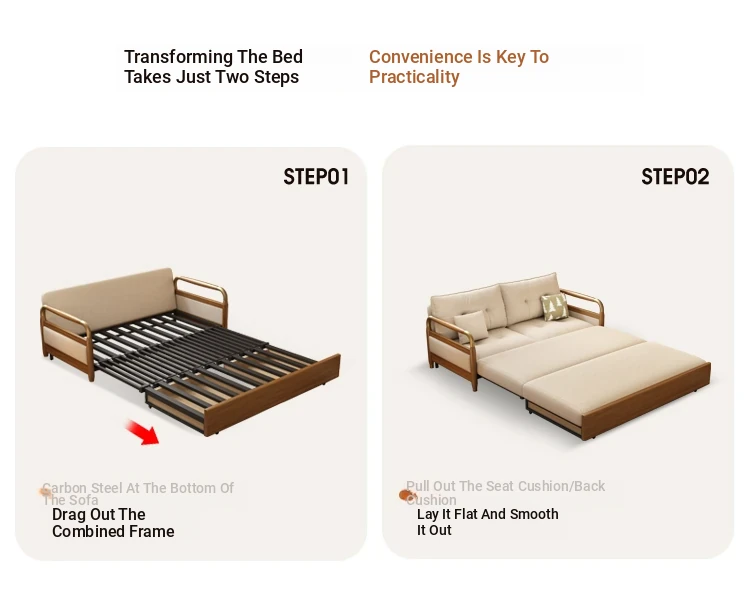 2025 Multifunctional Solid Wood Sofa Bed - Space-Saving, Detachable & Washable Cotton-Linen Design for Small Apartments and Home Offices - Ideal for Long-Term Sleeping and Versatile Use