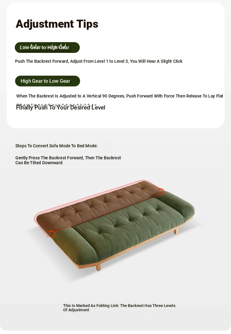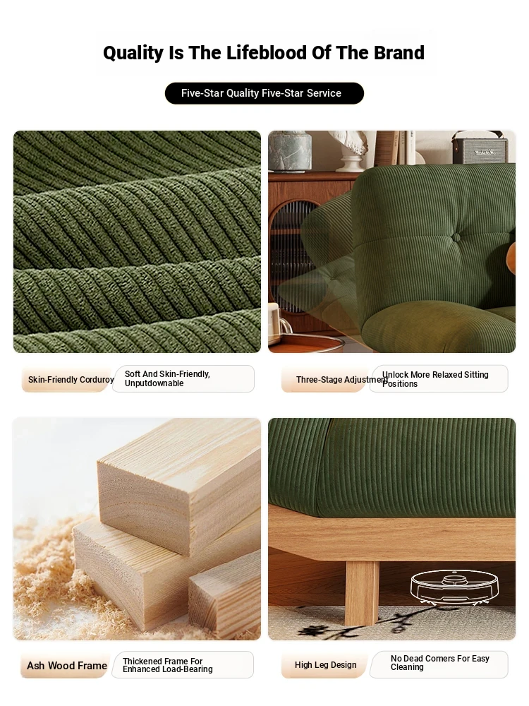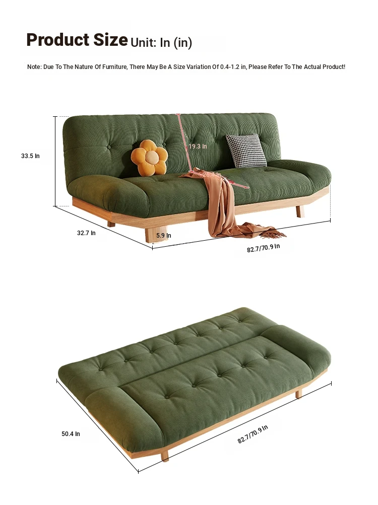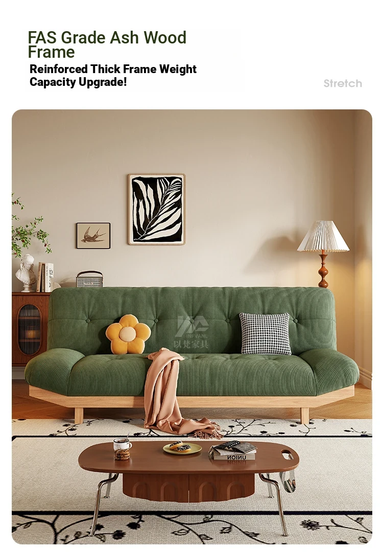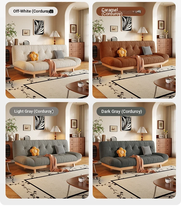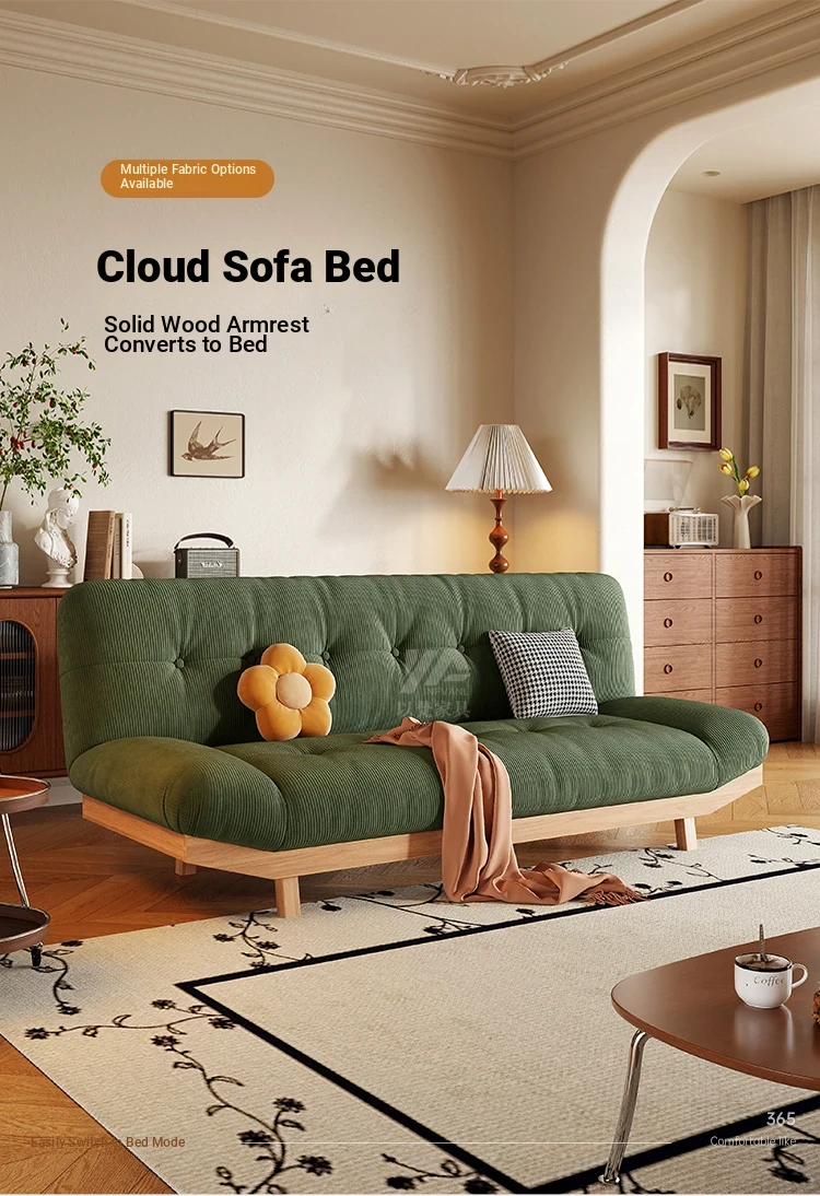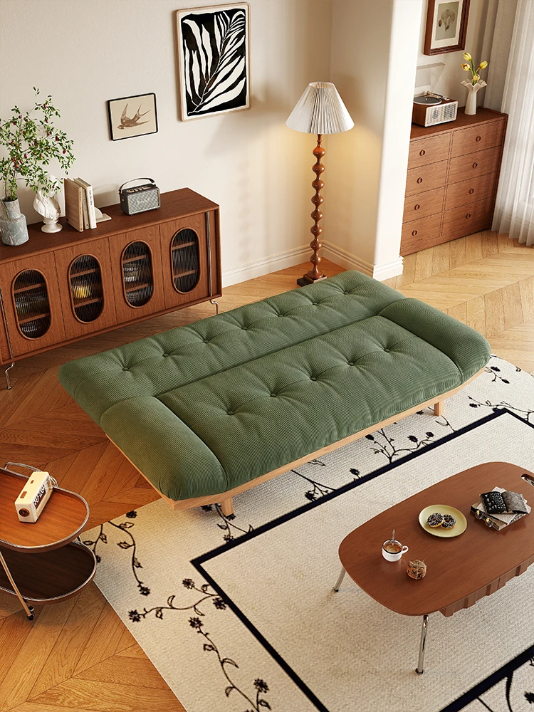 2025 New Rustic Style Multi-Functional Solid Wood Sofa Bed for Small Living Rooms and Studies - Foldable and Reclining Design for Ultimate Comfort and Space-Saving Solutions