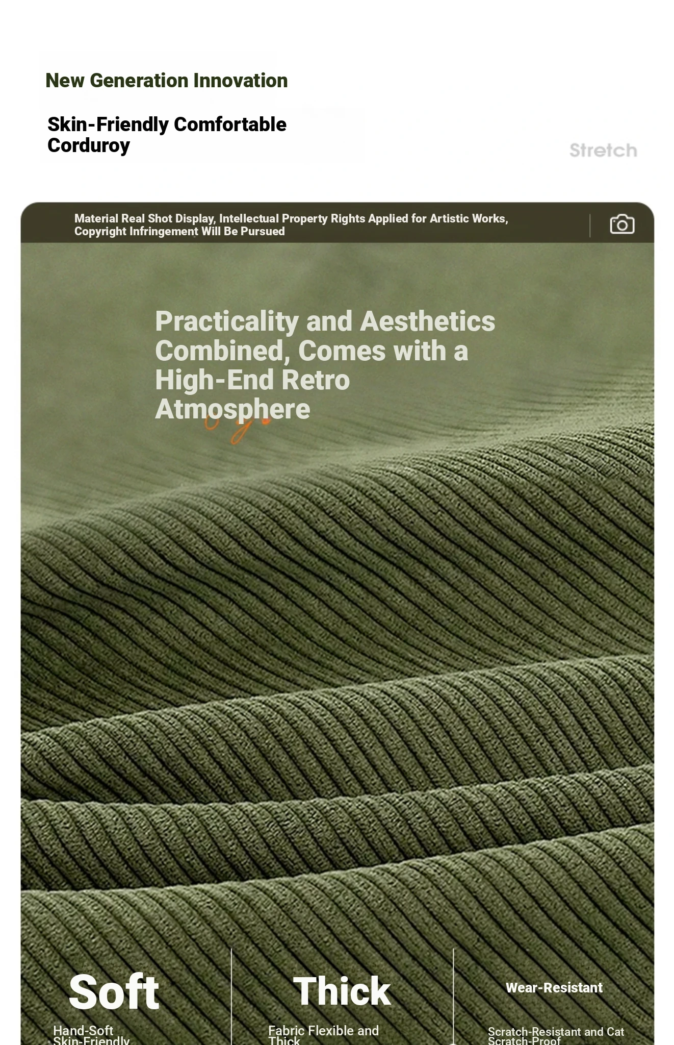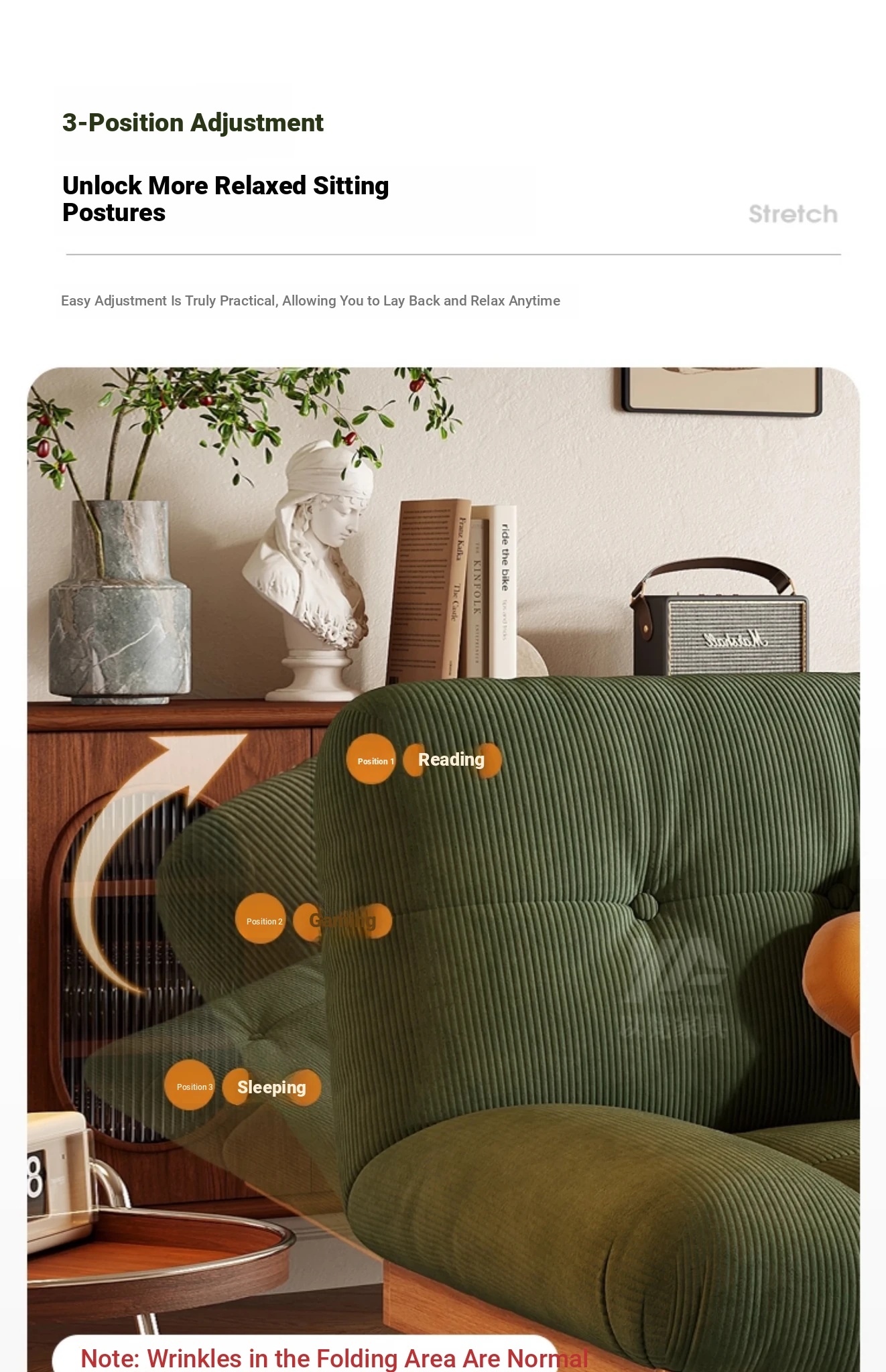Corduroy - 82.68in Sponge Style (Backrest Can Be Reclined)