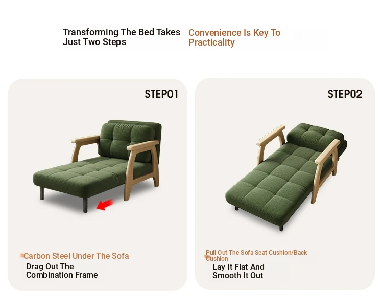 2025 New Solid Wood Sofa Bed - Multifunctional Foldable 2-in-1 Twin/Full Size for Small Apartments, Guest Rooms, and Home Offices