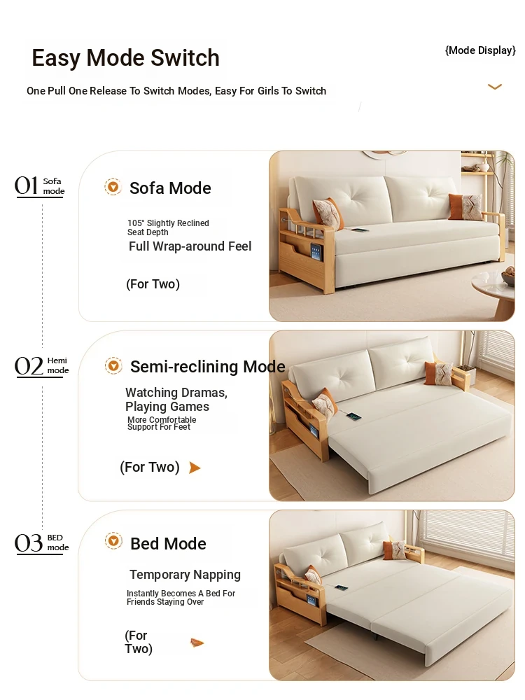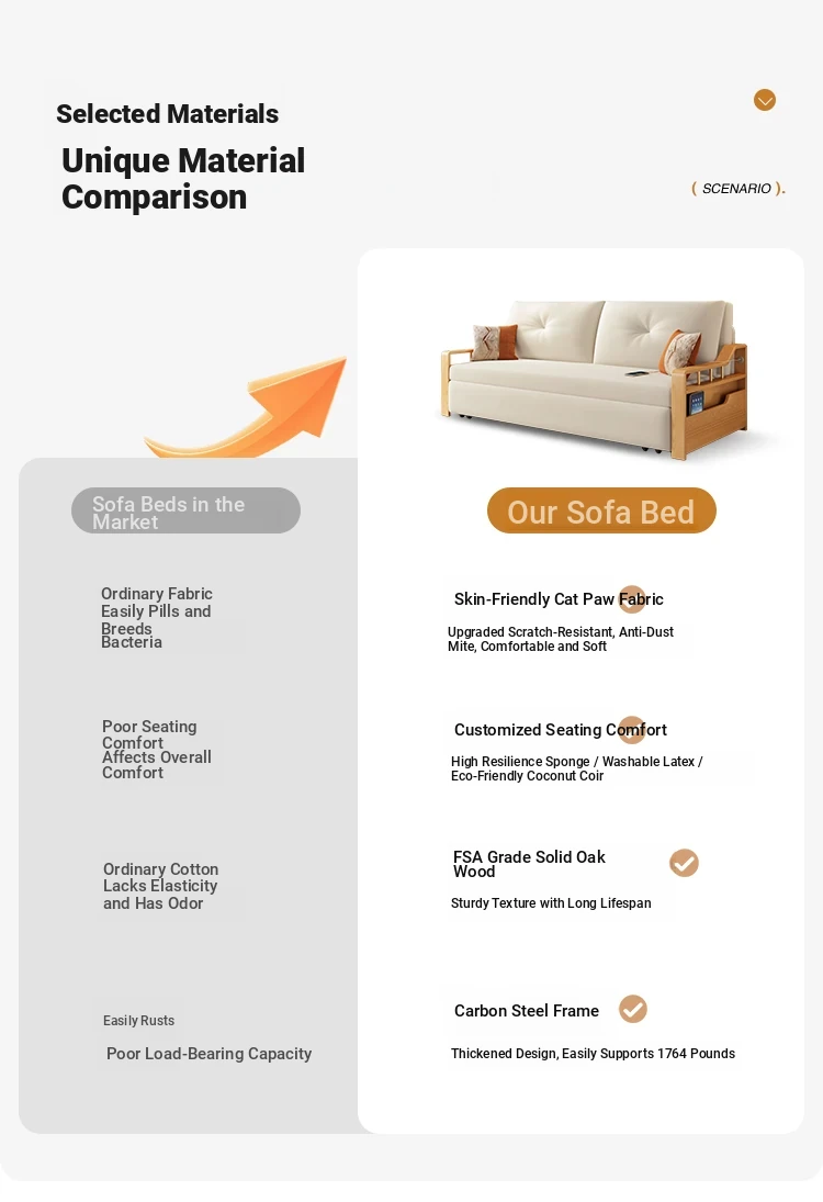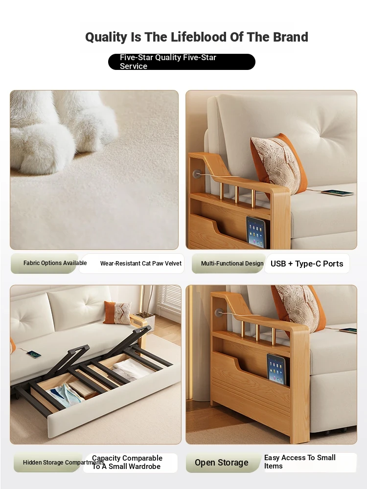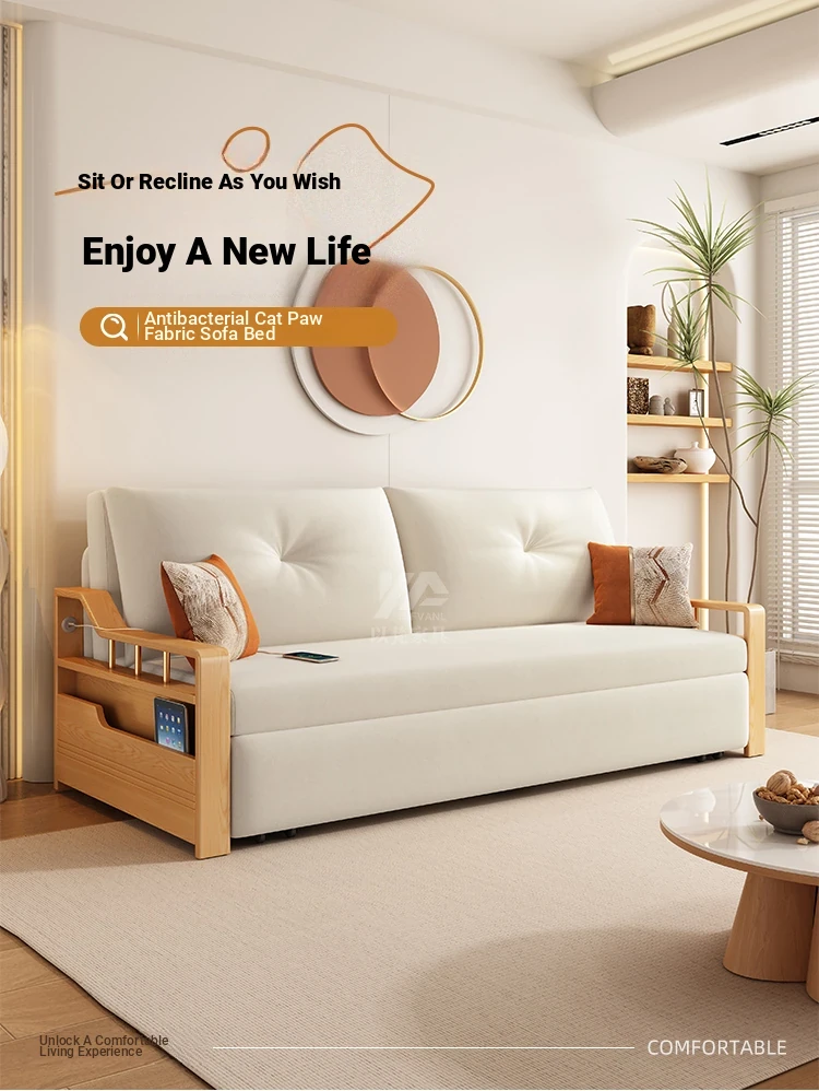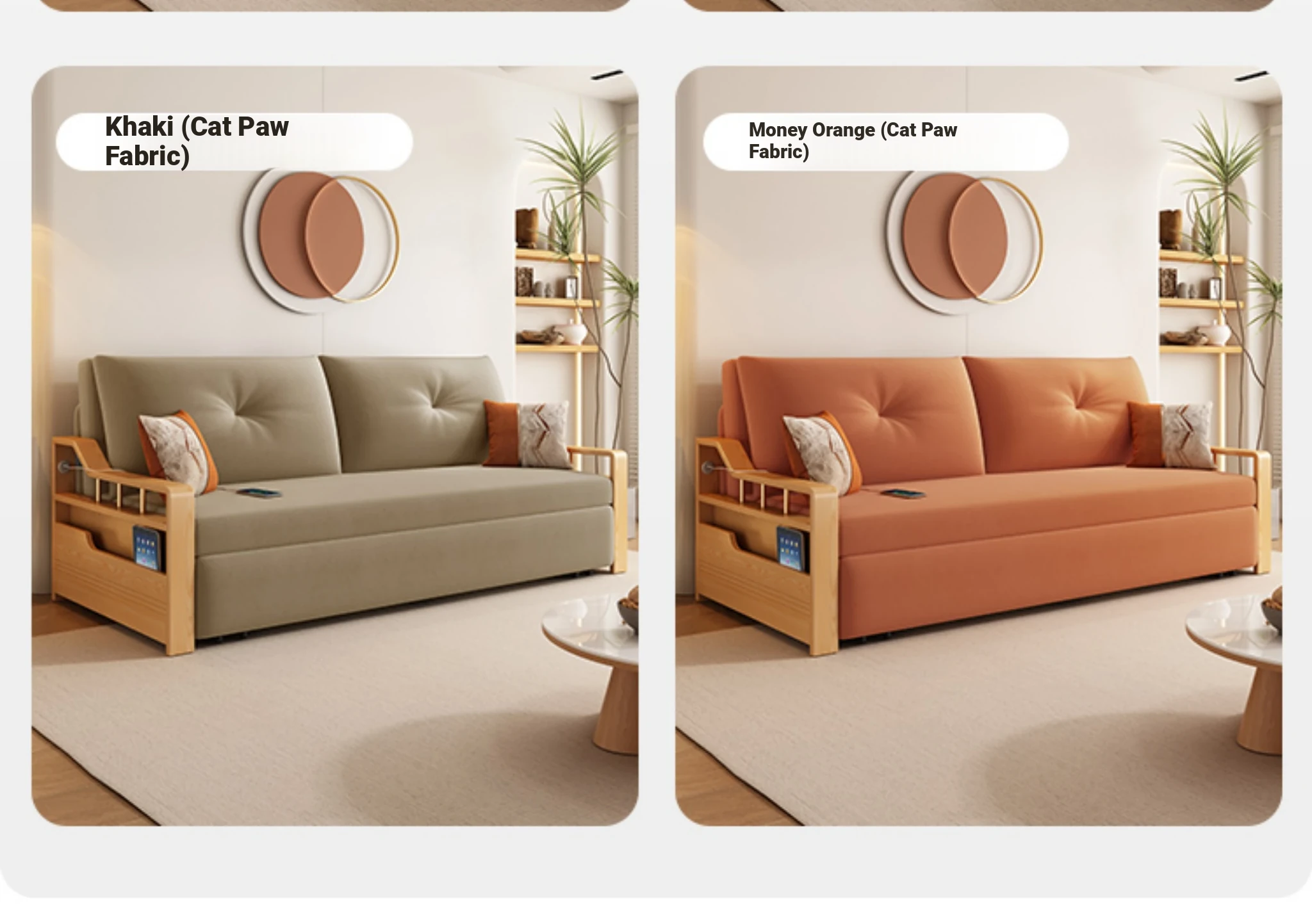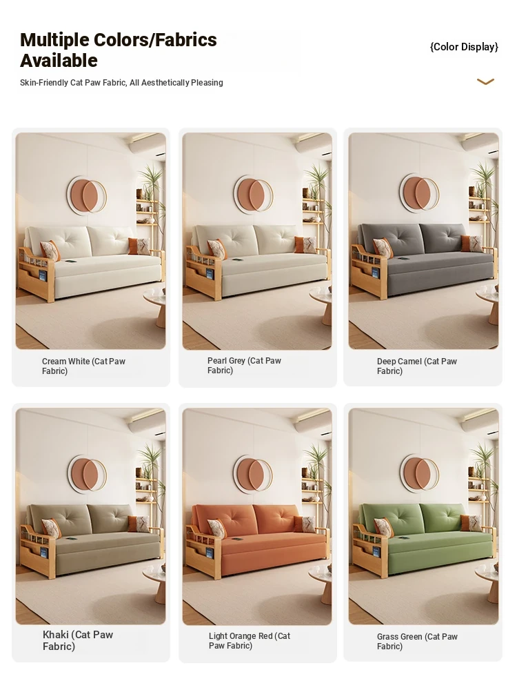 2025 New Solid Wood Sofa Bed with Cat Paw Fabric - Space-Saving Multi-Functional Foldable Design for Small Living Rooms and Studies, Perfect 2-in-1 Solution!