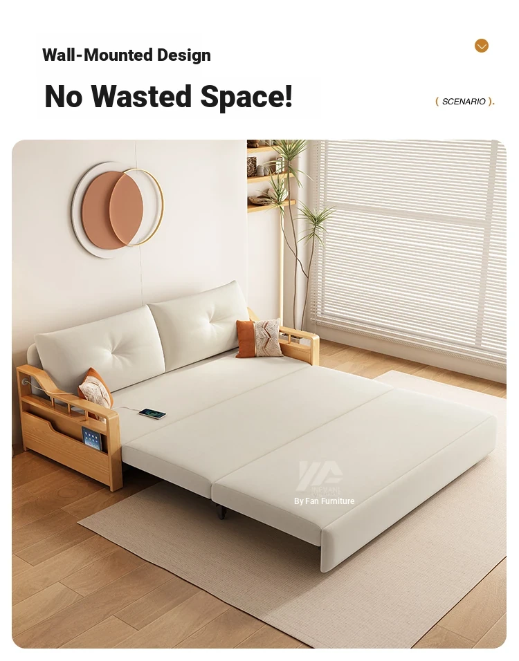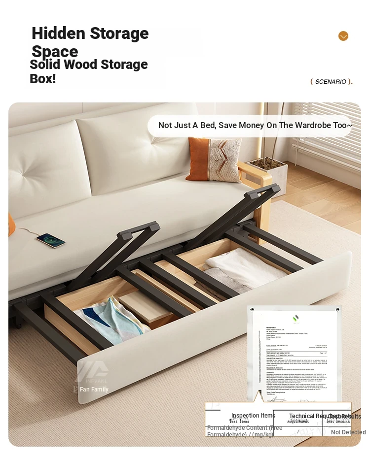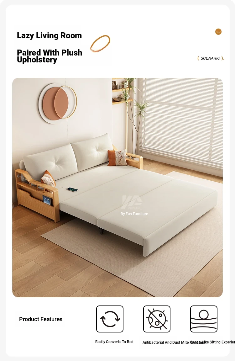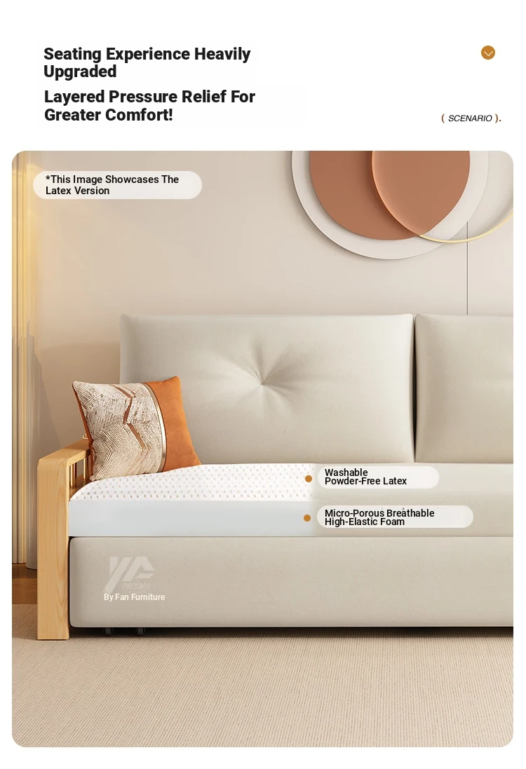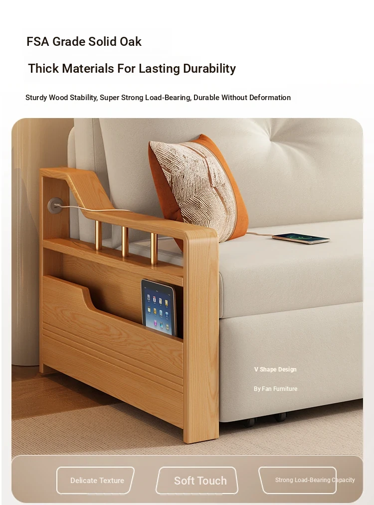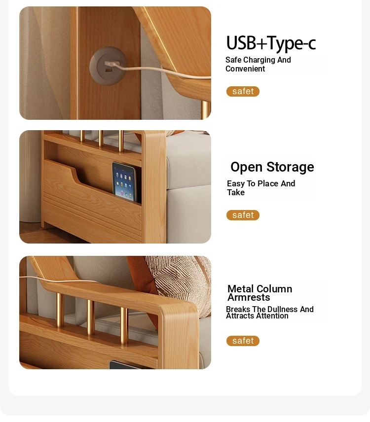 2025 New Solid Wood Sofa Bed with Cat Paw Fabric - Space-Saving Multi-Functional Foldable Design for Small Living Rooms and Studies, Perfect 2-in-1 Solution!