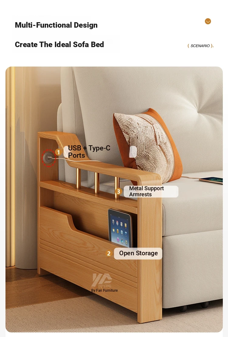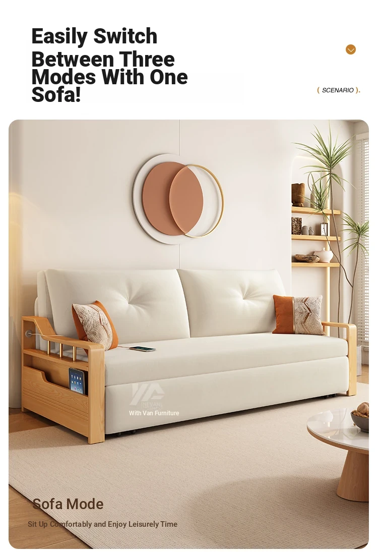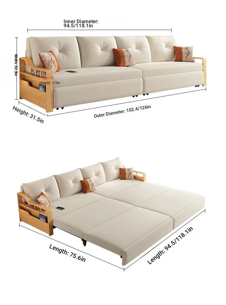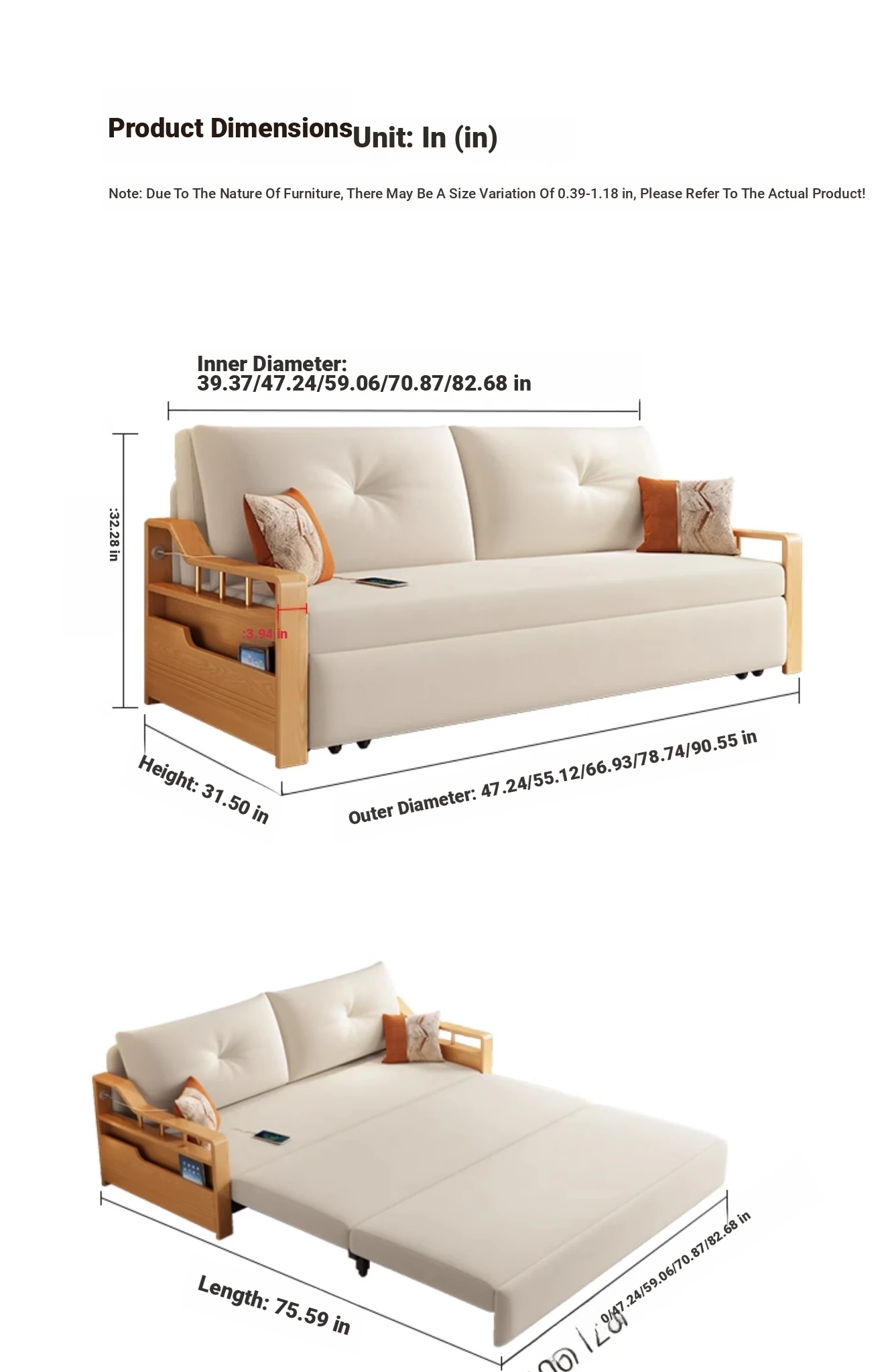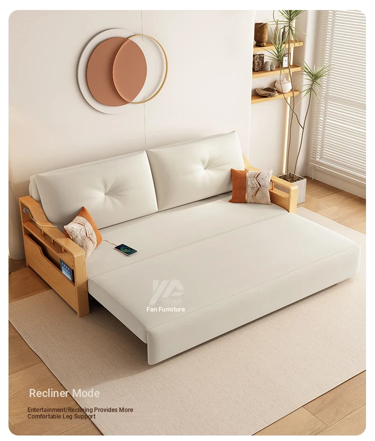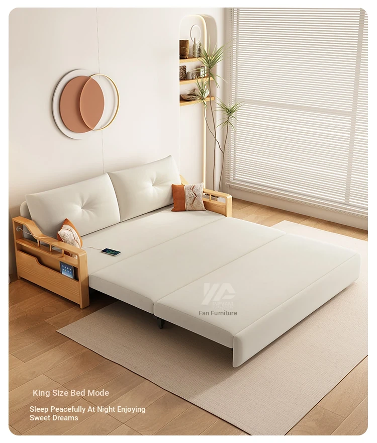 2025 New Solid Wood Sofa Bed with Cat Paw Fabric - Space-Saving Multi-Functional Foldable Design for Small Living Rooms and Studies, Perfect 2-in-1 Solution!
