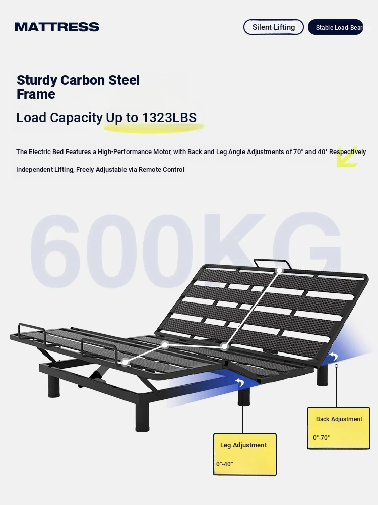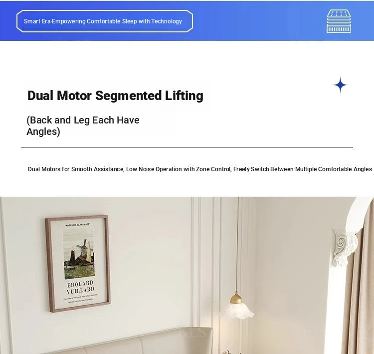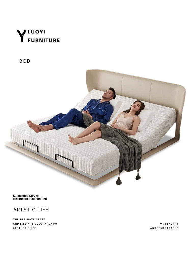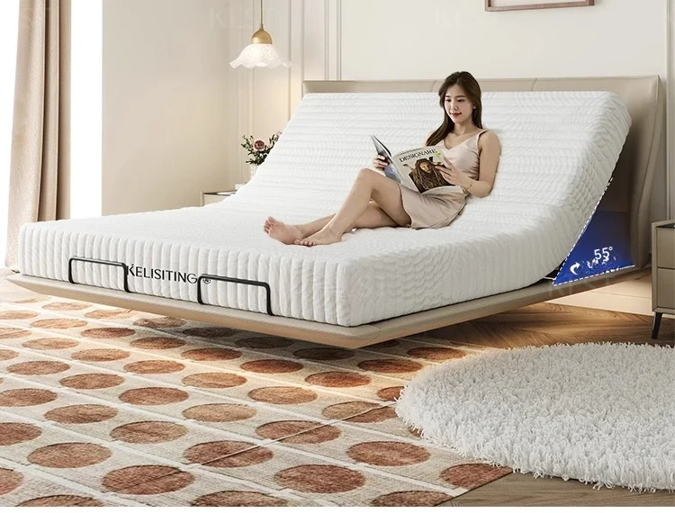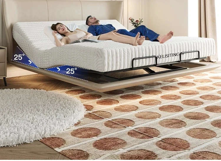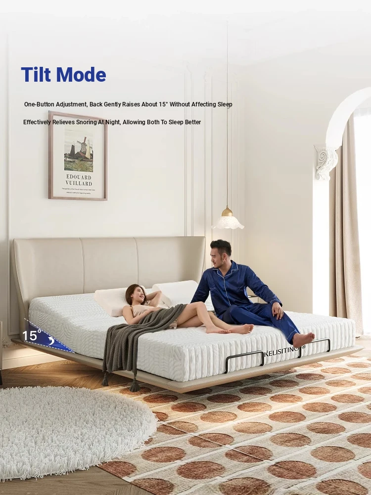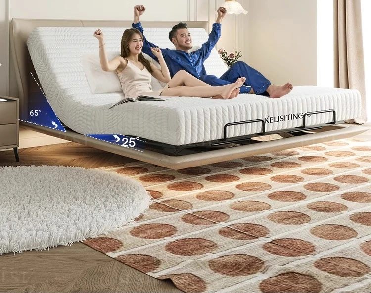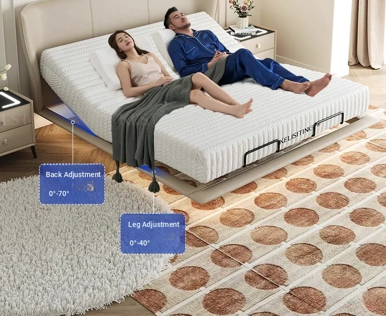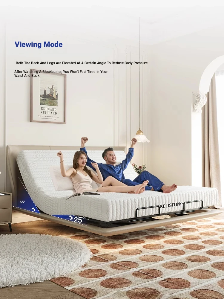 (First layer cowhide) bed + (German OKIN three motors) semi-Separates bed frame +(AI) zero pressure sponge mattress