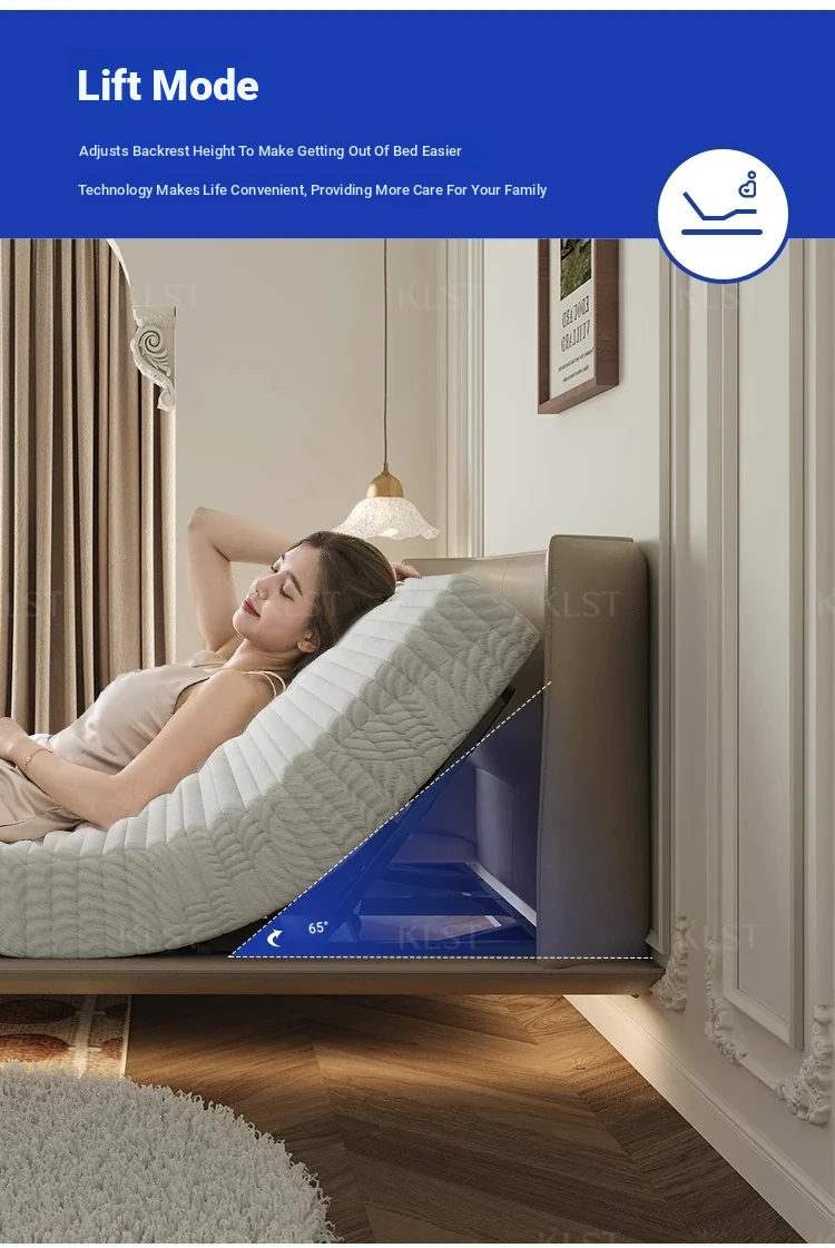 Alice Multifunctional Genuine Leather Smart Bed - Modern Electric Adjustable Bed with Zero Pressure and Anti-Snore Design for Master Bedroom, Saddle Style
